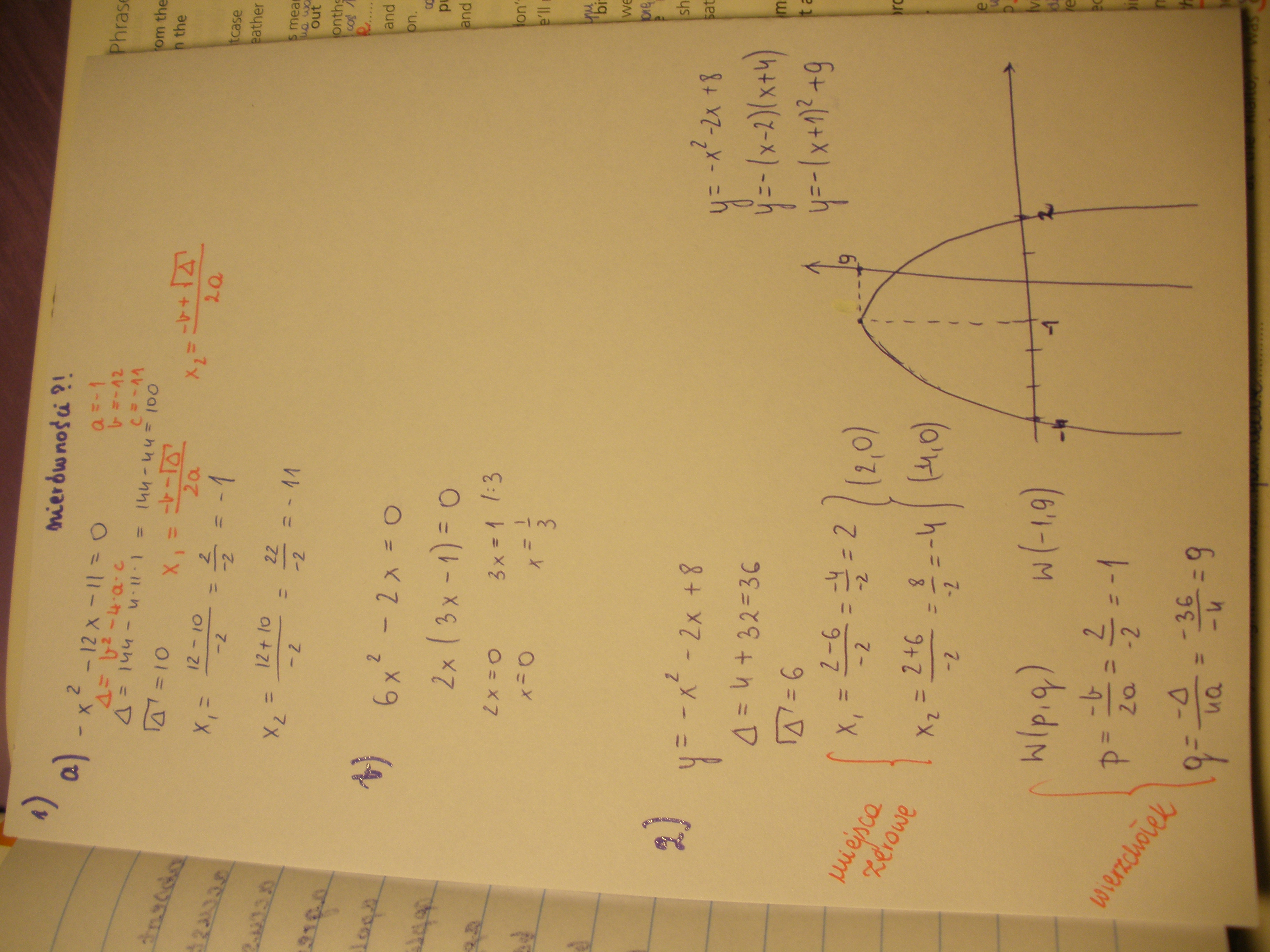 Naszkicuj wykres funkcji f(x) = -x(do kwadratu) -2x +8