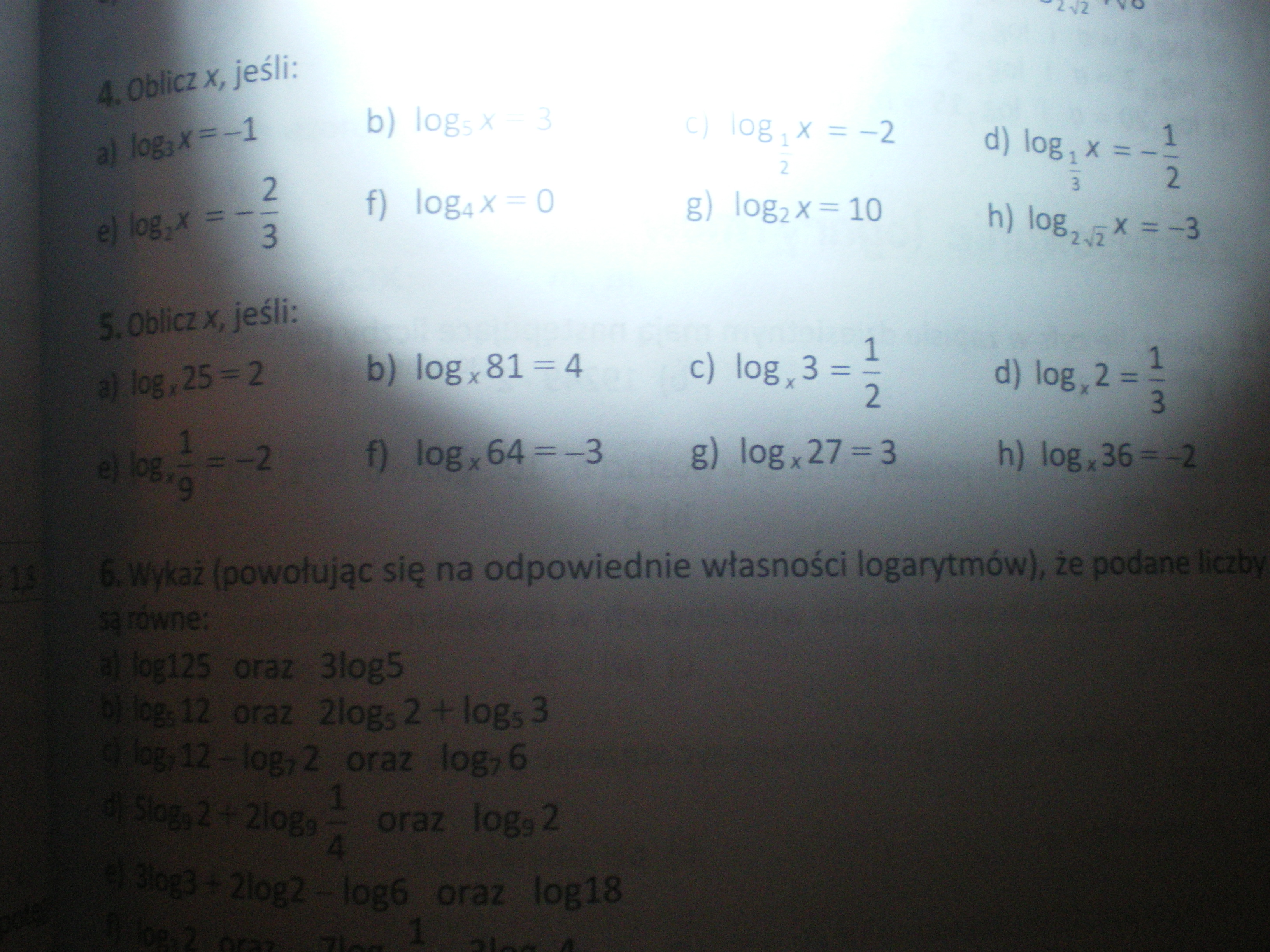 "Jeżeli podstawę logarytmu (ta mała cyferka) podniesiemy do potęgi, która jest po prawej stronie znaku równości to ile wyjdzie? Zacznę od (b), słabo widać, ale chyba jest to: