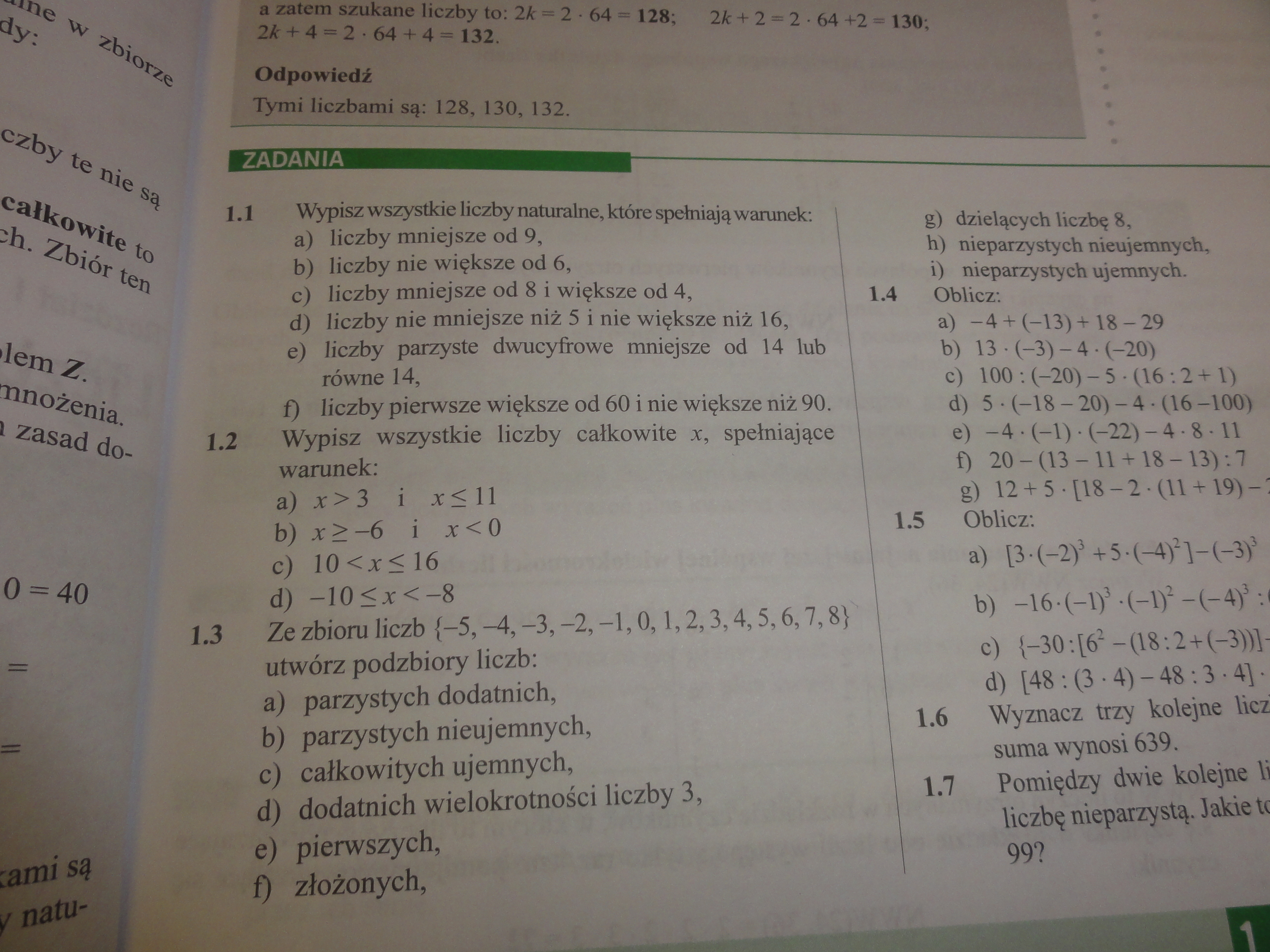 1.1 Uwaga: Jeżeli nauczyciel mówi, że zero jest liczbą naturalną w rozwiązaniach zostaw zera. Jeżeli mówi, że nie - usuń je.