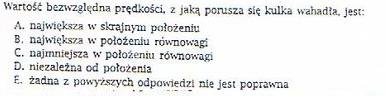 wartość bezwzględna prędkosci z jaka porusza sie kulka wahadła jest..