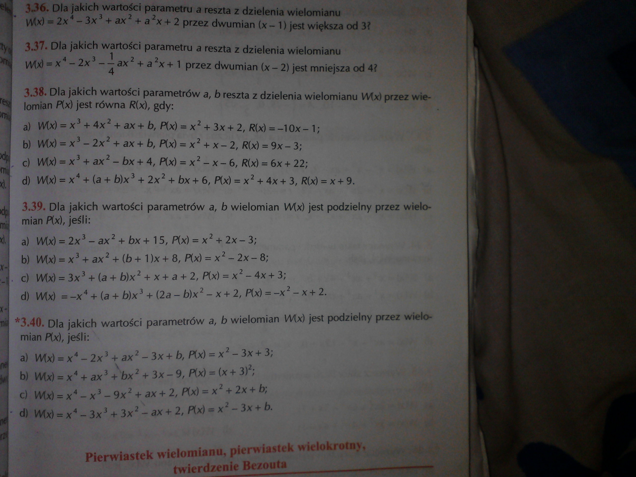Aby W(x) był podzielny przez P(x) reszta musi być zerem dla każdego x, dlatego: