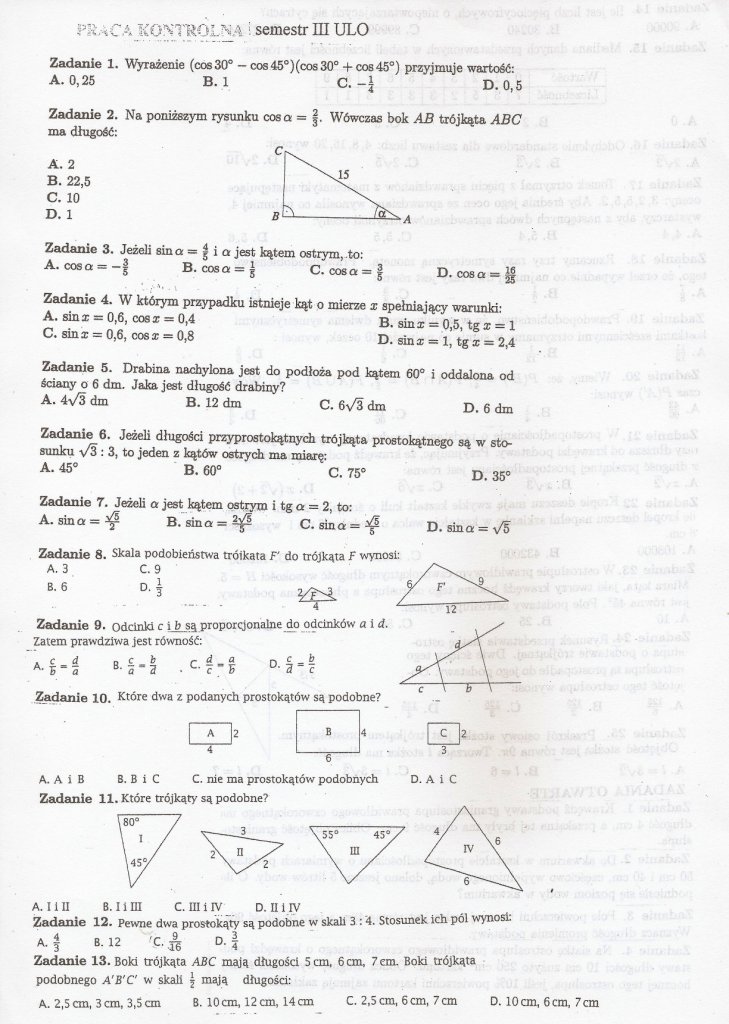 7. Odp. B, ze wzoru na sinus alfa gdy jest znany tangens alfa.