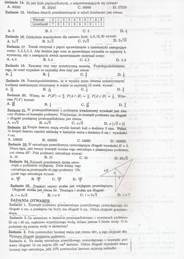 Proszę o pomoc w zadaniach z matematyki. Zadania są w formie testu z możliwościami odpowiedzi a,b,c lub d . Jedna odpowiedź jest tylko prawidłowa. Zadania są dostępne w załączniku.