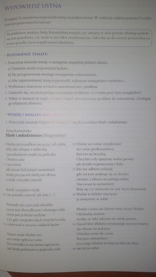 Przydatność 80% Analiza i interpretacja wiersza Anny Kamieńskiej "Hiob i młodzieniec"