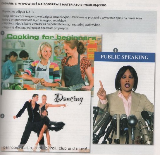 Twoja szkoła chce zroganizować zajecia pozalekcyjne. Uczniowie sa proszeni o wyrazenie opinii na temat tego, ktorego zproponowanych zajec sa najpotrzebniejsze. Wybierz zajecia, ktore uwazasz za najpotrzebniejsze i uzasadnij swój wybór.wyjhaśnij dlaczego odrzucasz pozostale propozycje. i 1 to jest cooking for beginners 2. Dancing ballroom, latin , rock roll, club and more i 3. Public speaking. Musze miec trzy argumenty na podanie ktory wybieram i dlaczego i dlaczego odrzucam inne. Na pewno wybralabym to pierwsze gotowanie dla poczatkujacych glownie dlatego , ze jest najbardziej praktyczne i potrzebne do zycia, wazne jest zebysmy sami umieli gotowac, jestesmy niezalezni czy cos takiego.proszę o pomoc, rozwiniecie, od tego zalezy czy zalicze angielski na semestr, bardzo prosze o pomoc:(