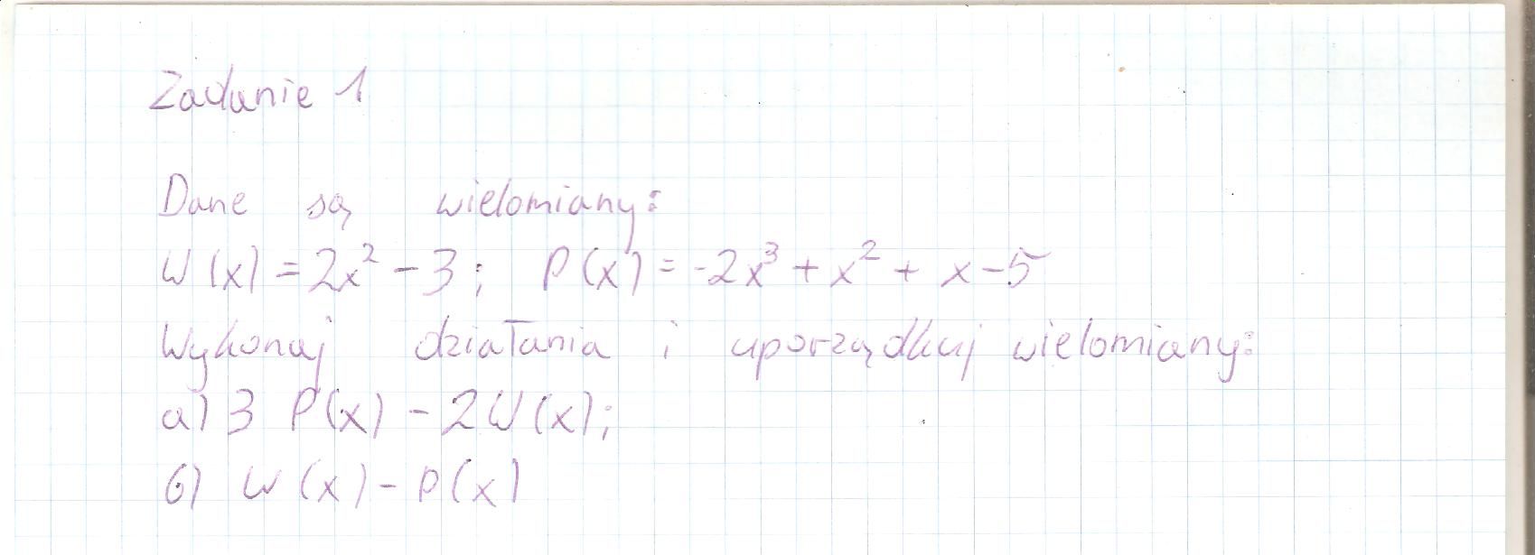 b) W(x) - P(x)= 2x - 3 - (- 2x3 +x2+x-5) = 2x -3 +2x3 - x2 - x +5 = 2x3-x2+x+2Dodawanie komentarzy zablokowane - Zgłoś nadużycie