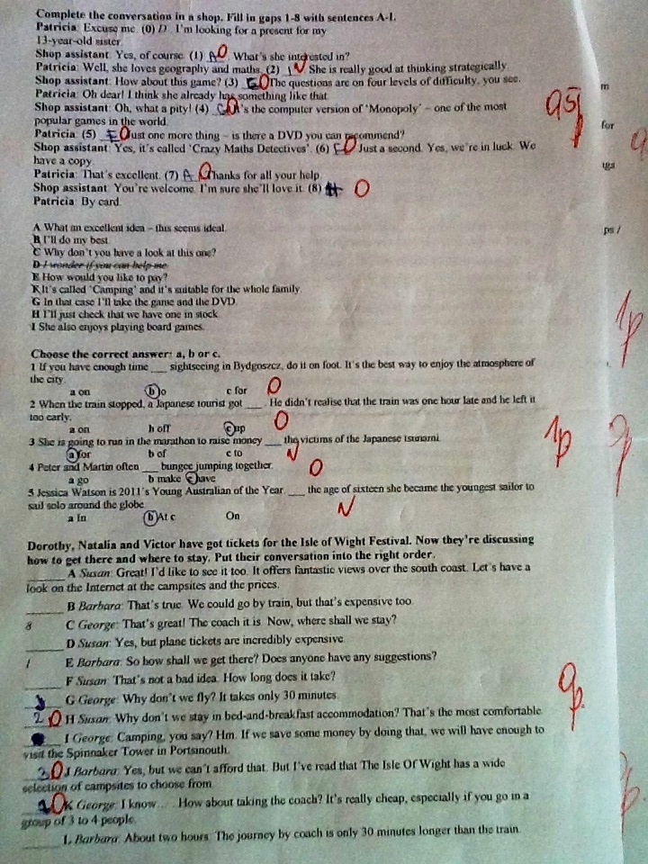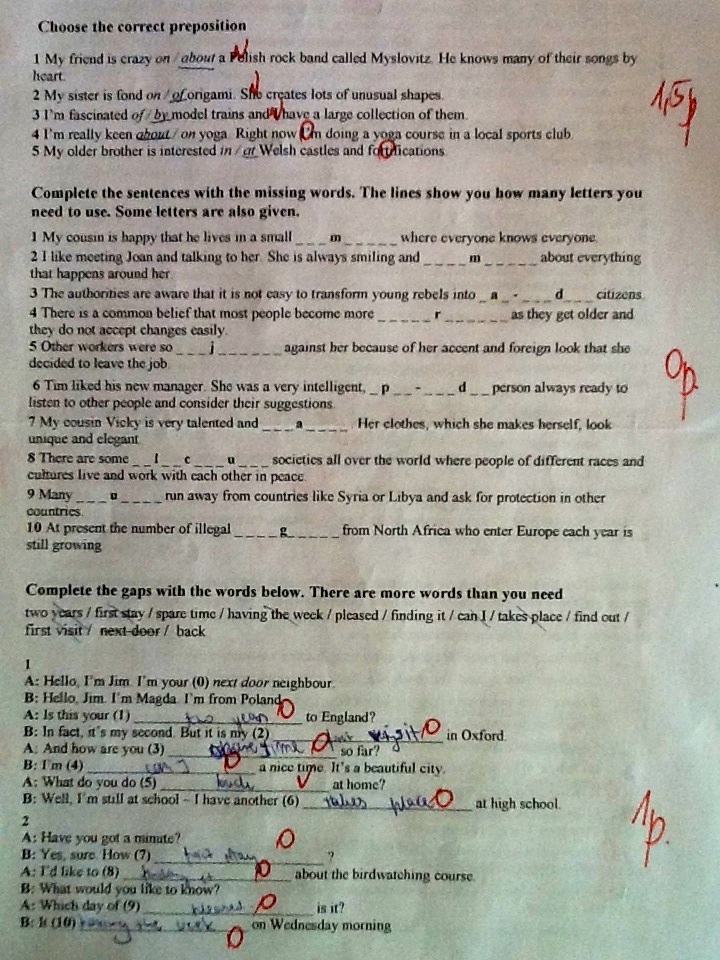 Bardzo prosze o poprawienie sprawdzianu z angielskiego dostałam z tego jedynkę a kompletnie sie na angielskim nie znam i bardzo prosze o pomoc