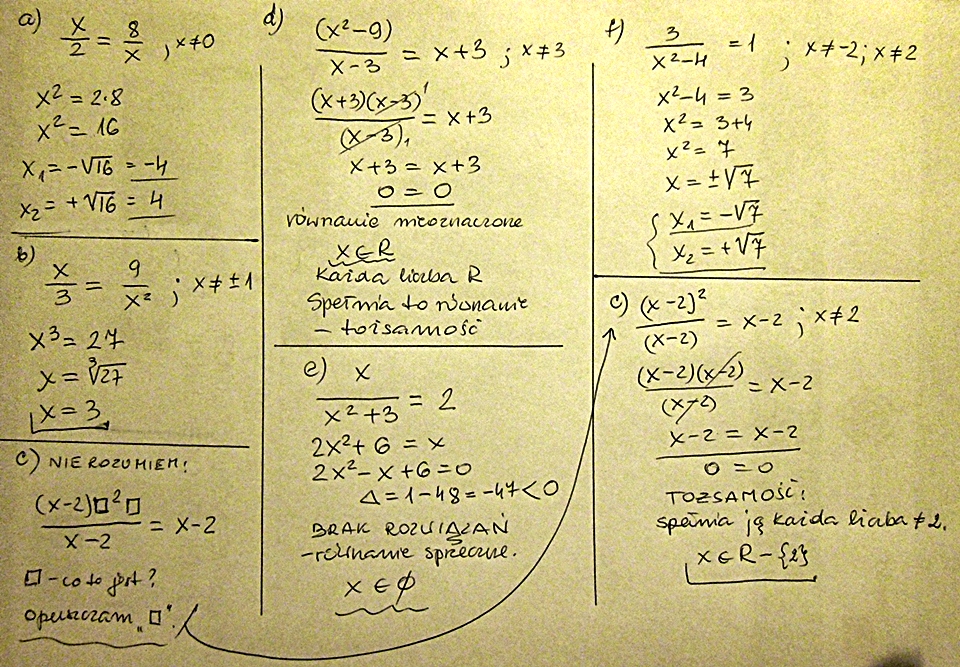 e) x/(x^2+3 )=2 f) 3/(x^2-4)=1
