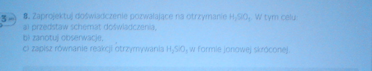 Należy narysować zlewkę,w której znajduje się roztwór krzemianu(IV) sodu (Na2SiO3) ,a z góry strzałkę z napisem HCl.
