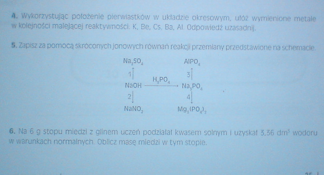 Cs (najbardziej aktywny) ,K , Ba , Be , Al (najmniej aktywny).