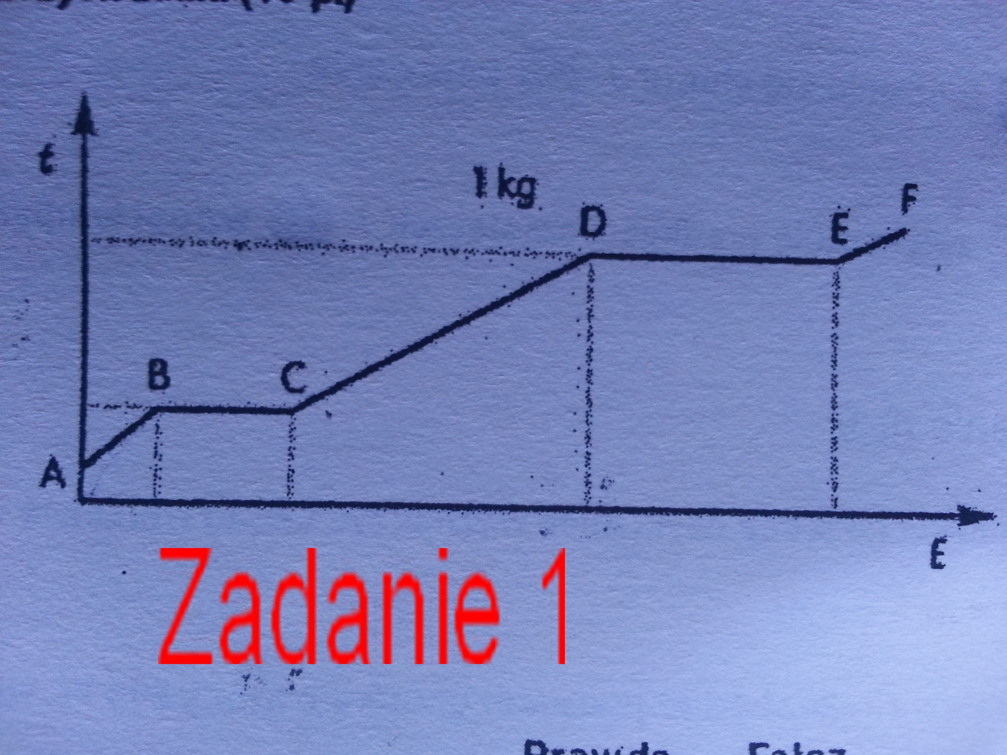 Przedstawiony niżej wykres zależności temperatury od dostarczonego ciepła sporządzono dla 1 kg wody.