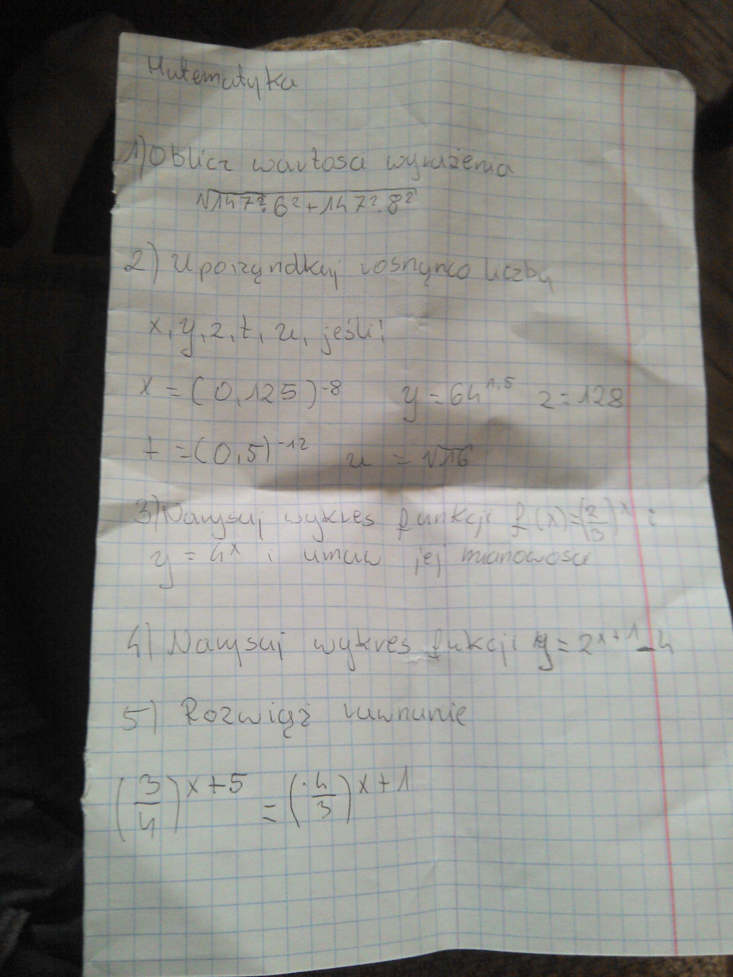 Pomóżcie mi proszę zrobić te zadania z matematyki:-( jutro muszę oddać i zdać z tego egzamin..litości- potrzebuję na dzisiaj.Proszę..