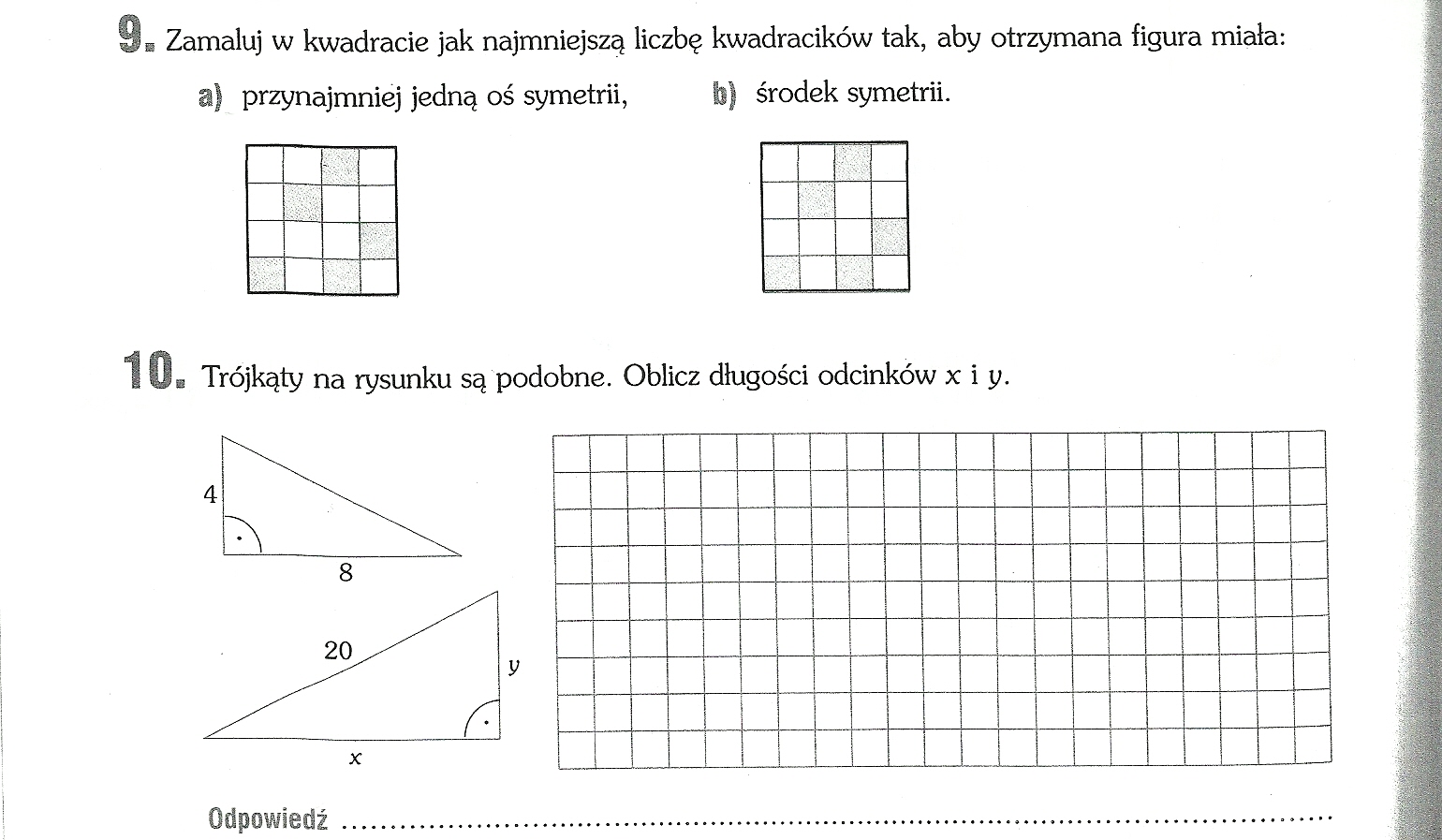 10.Trójkaty na rysunku są podobne. Oblicz długośc odcinków x i y.