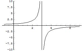 Asymptoty: pionowa x = 3, oraz pozioma y = 0