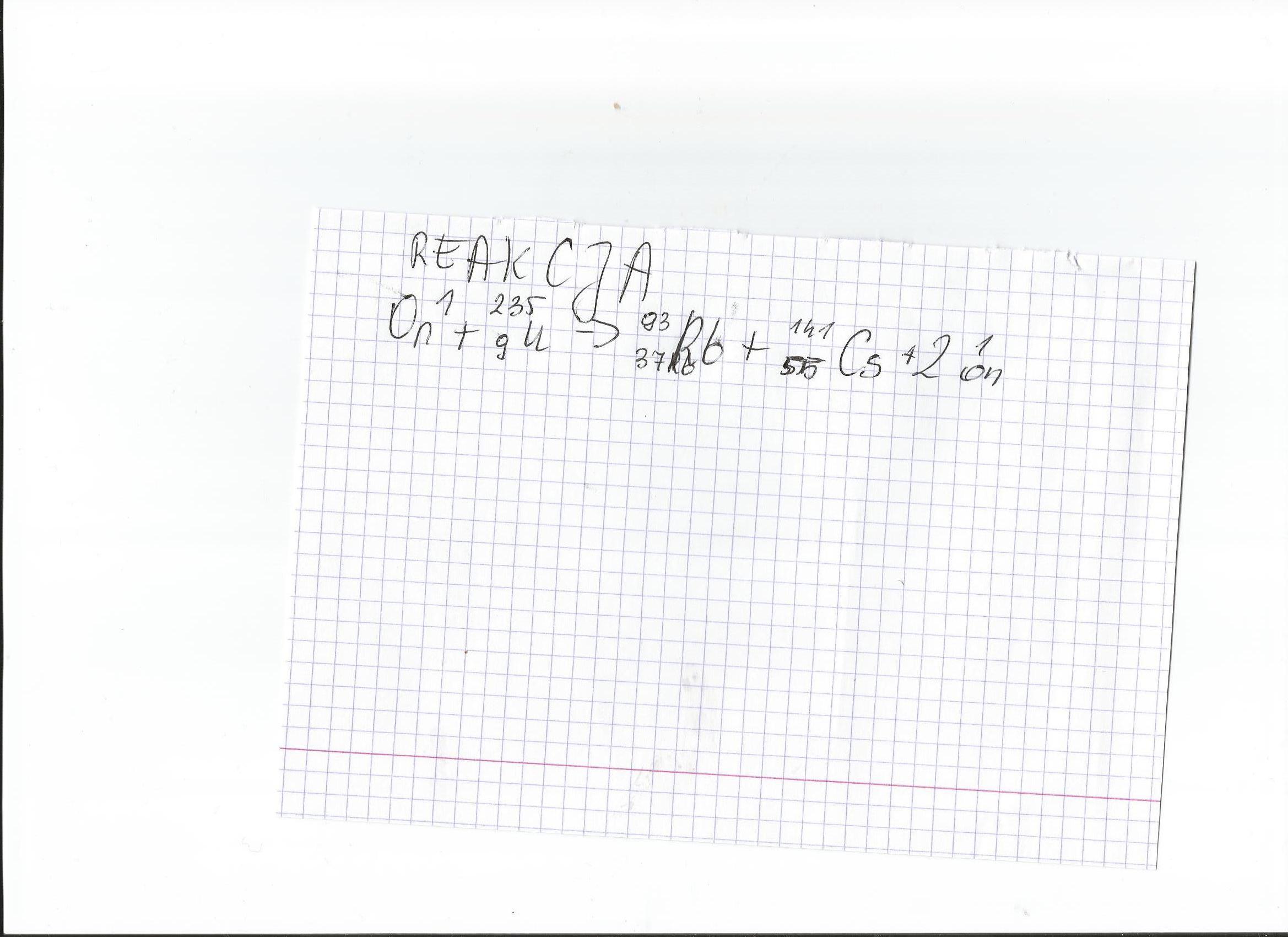 Oblicz energię rozszczepienia jądra uranu uwalnianą podczas rekcji (reakcja w załączniku)
