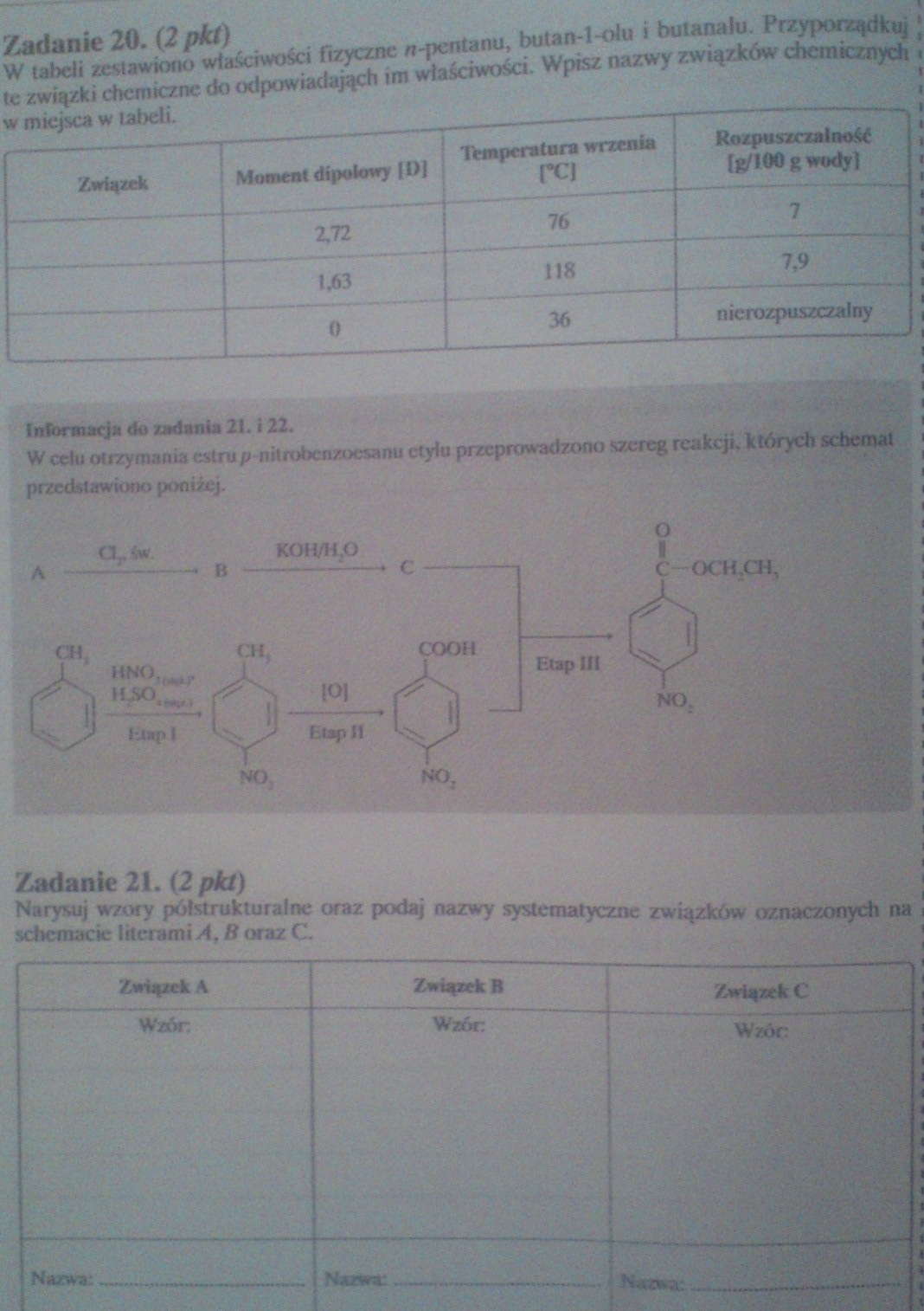 Związki należy wpisać do tabelki w kolejności :