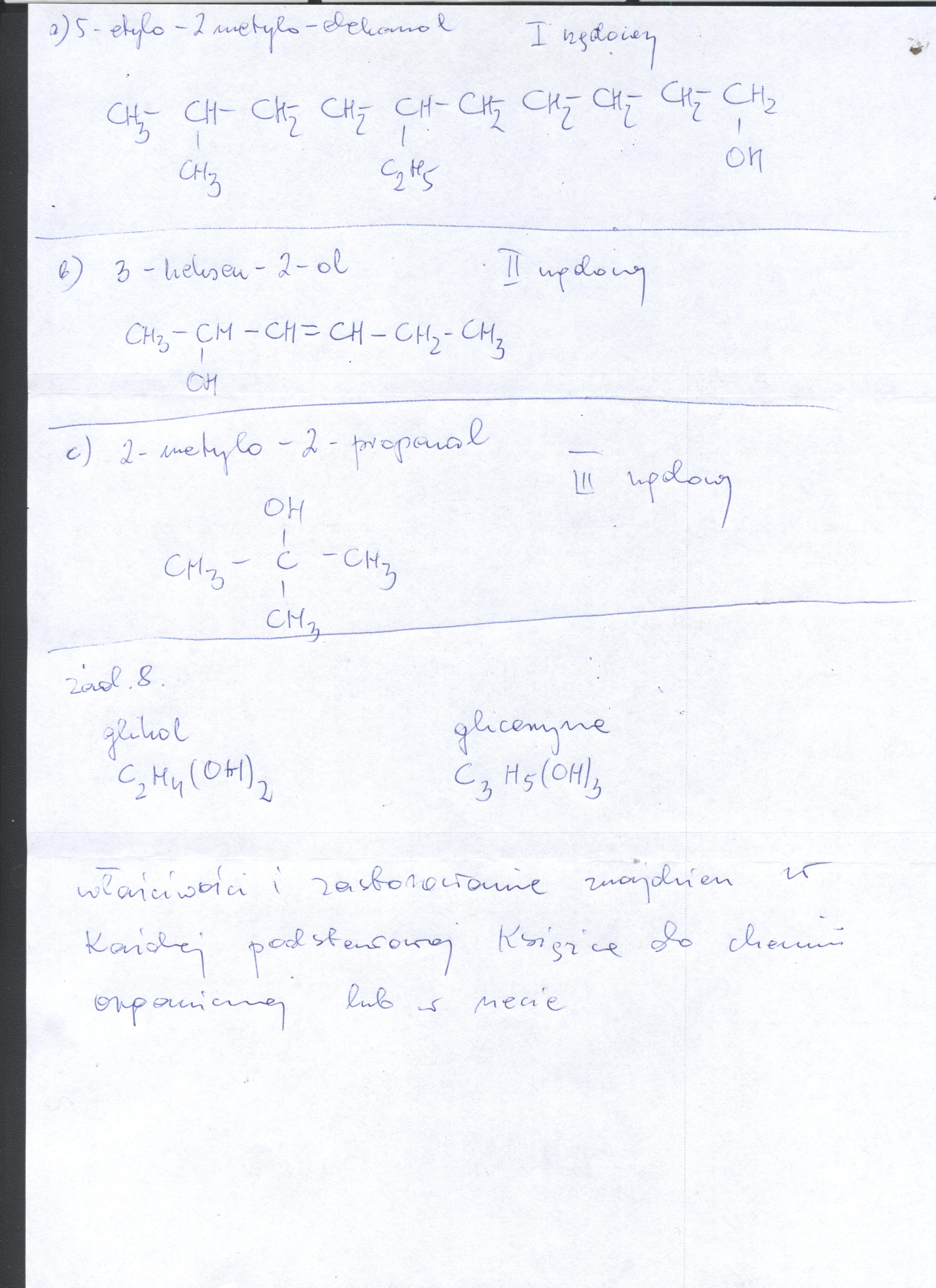 Określ rzędowośd alkoholi i podaj wzór półstrukturalny: