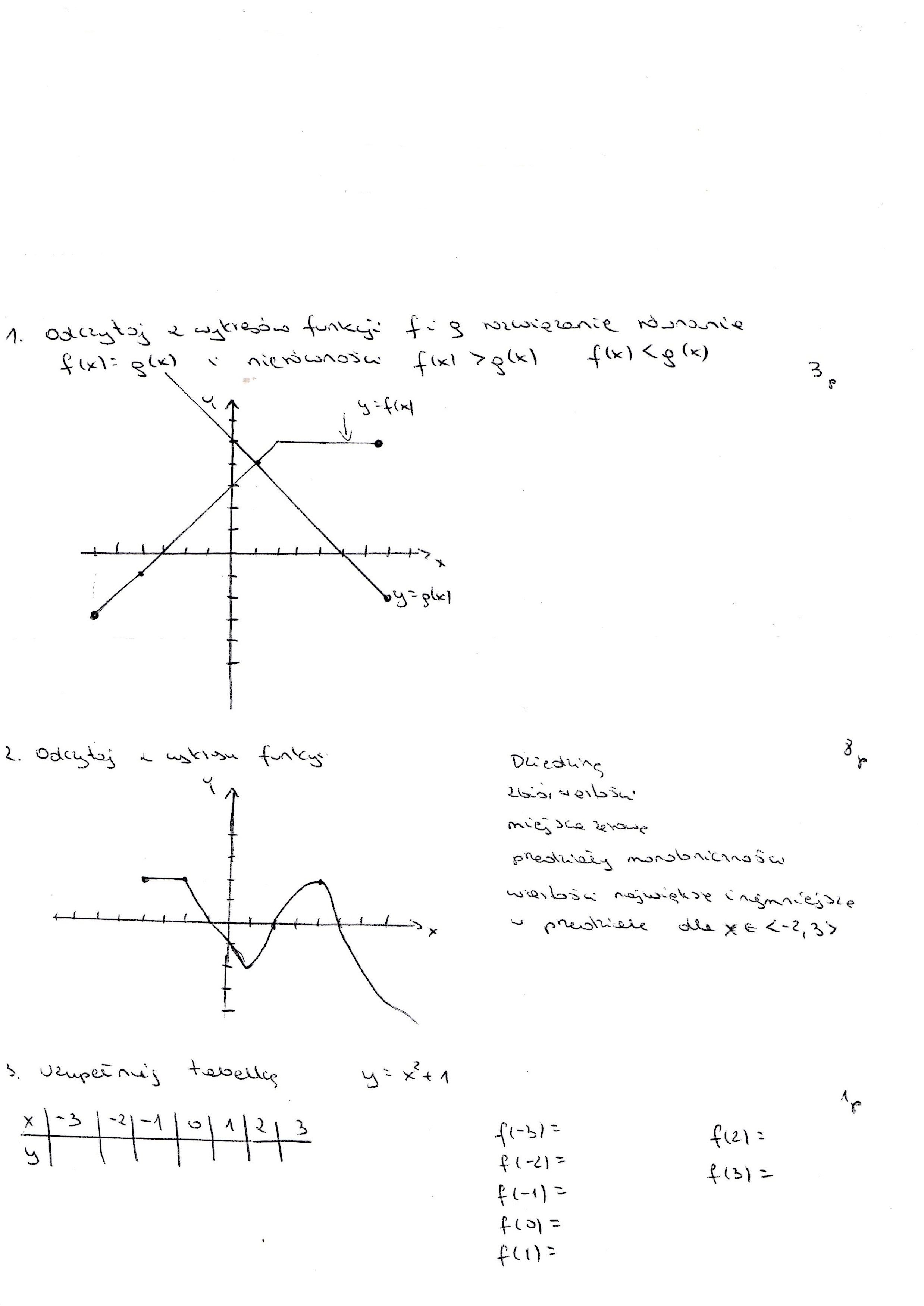 Na prawo od x = 1 mamy f(x) > g(x). Dziedzina funkcji kończy się w x = 7 więc