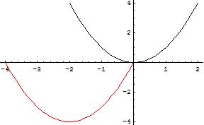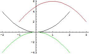 Początkową funkcję y=x^2 (czarny) najpierw odbijamy względem osi X, (zielony),