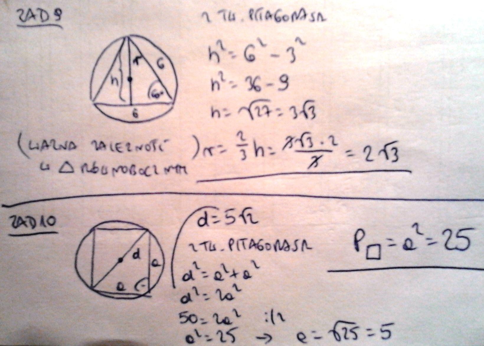 zad.9 oblicz promień okręgu opisanego na trójkącie równobocznym o boku równym 6cm