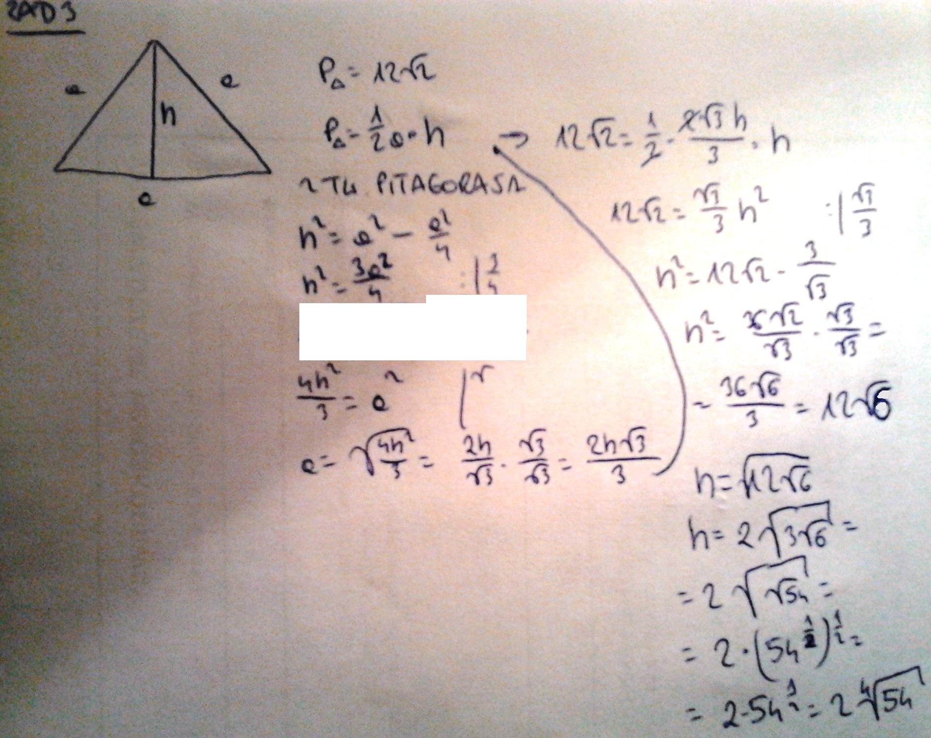 zad.3 oblicz wysokość trójkąta równobocznego o polu 12√2cm2