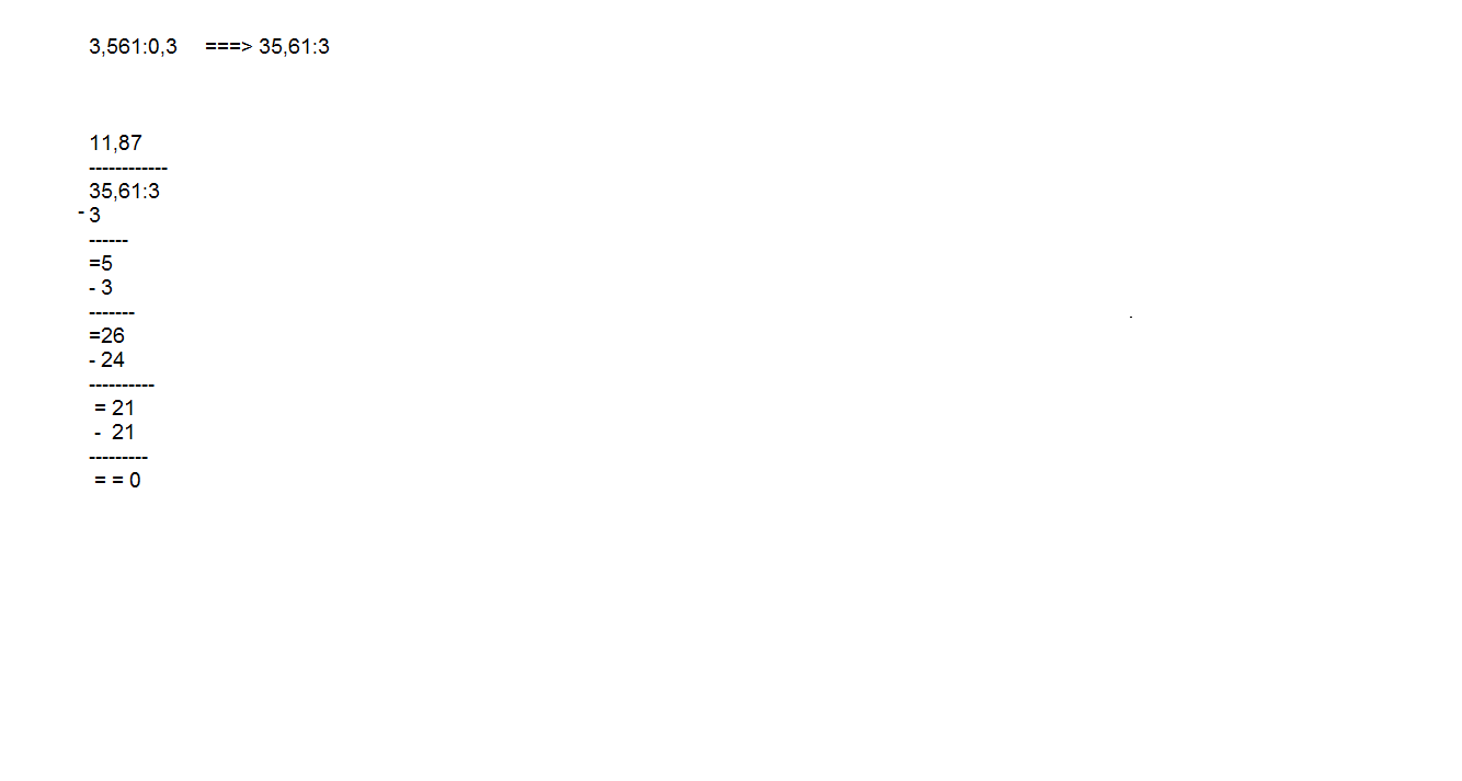 Przesuwamu w obu liczbach przecinek w prawo do momentu aż dzielnik będzie liczbą naturalną.