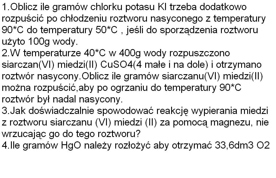 po podgrzaniu roztworu z temp. 40 st. C do temp 90 st. C, aby roztwór był nasycony należy rozpuścić