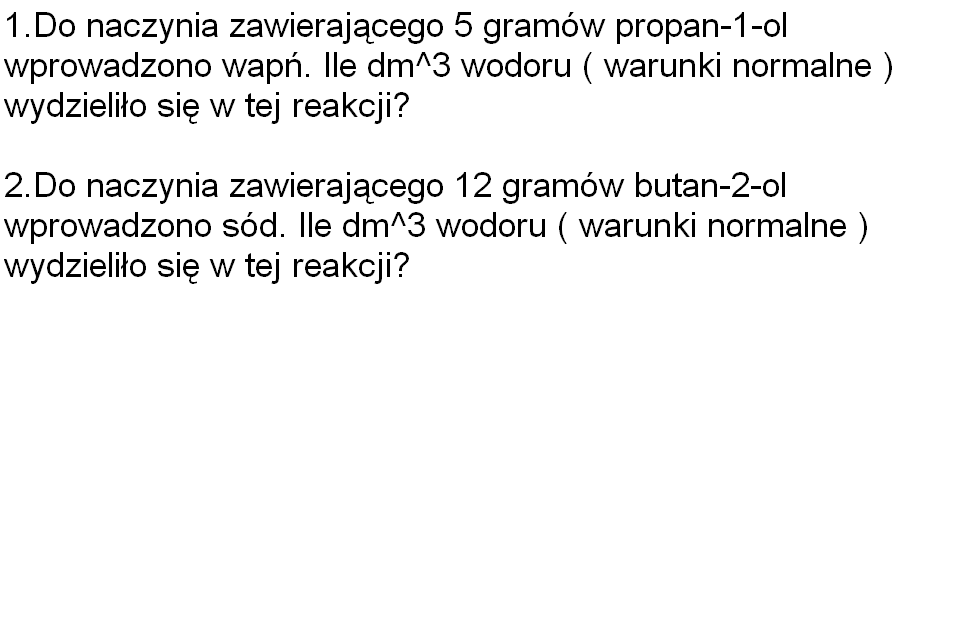z 5 g propan-1-olu w war. norm. otrzymamy 0,93 dm^3 wodoru