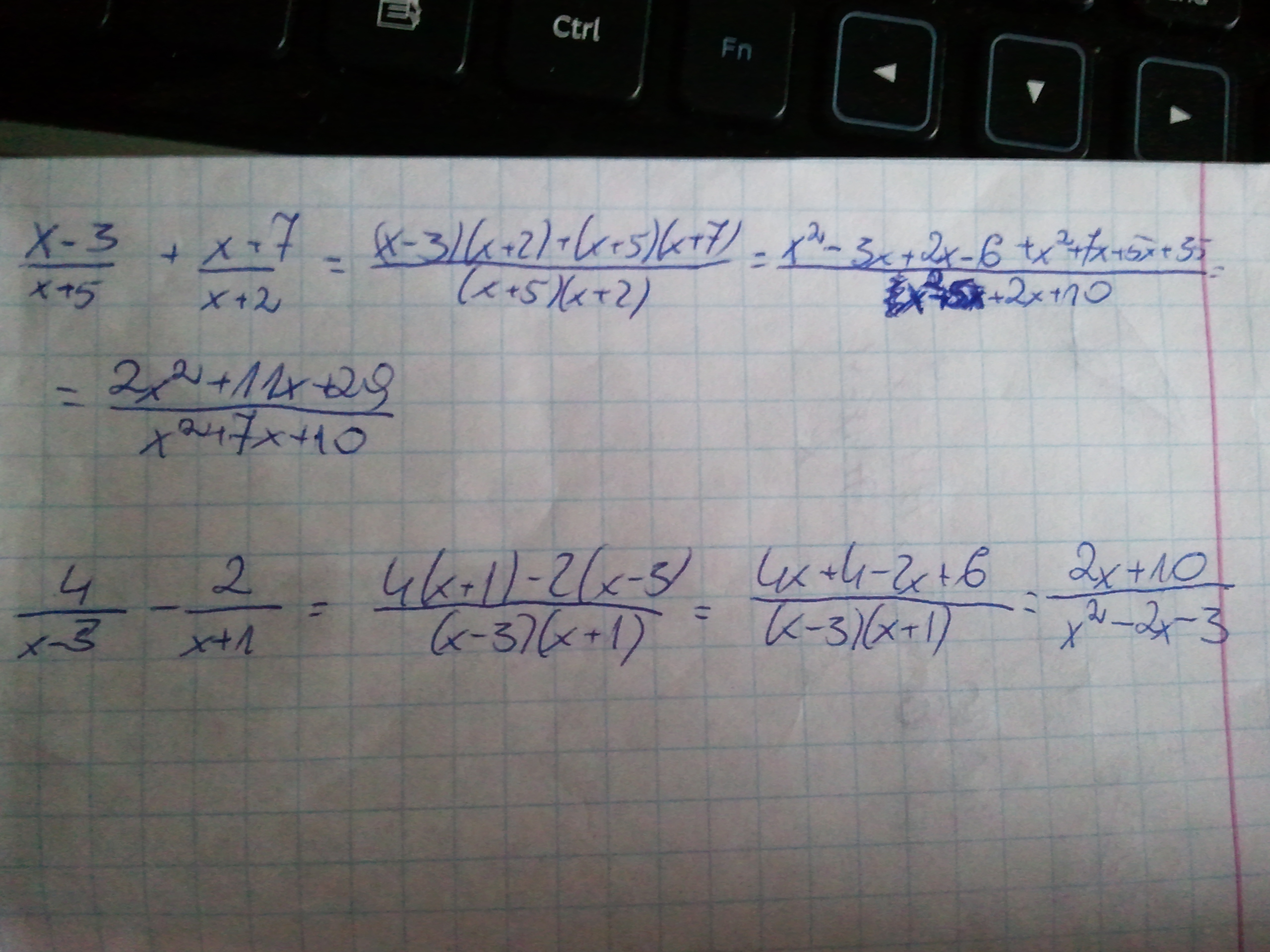 a) x-3/x+5+x+7/x+2