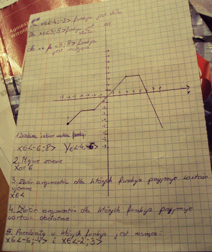 wartości dodatnie przyjmuje dla xe(0;6)