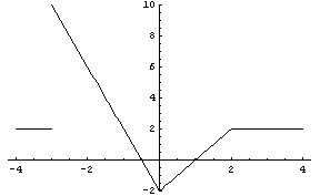 To też ciągły wykres, punkt "załamania" to (2; 0), tam dorysuj kropkę.