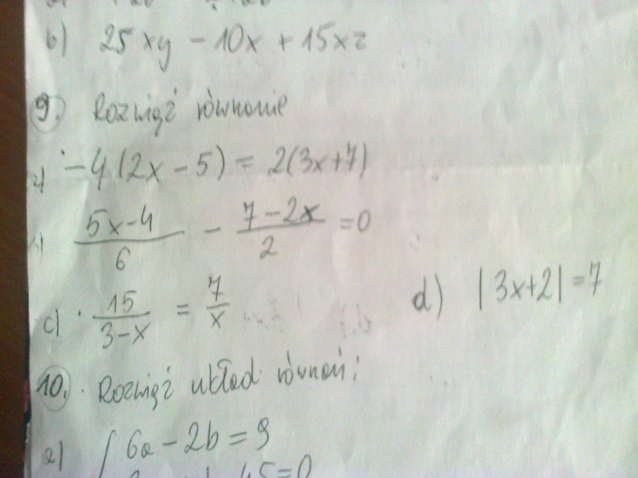 Mnożymy przez 6: (5x - 4) - 3(7 - 2x) = 0