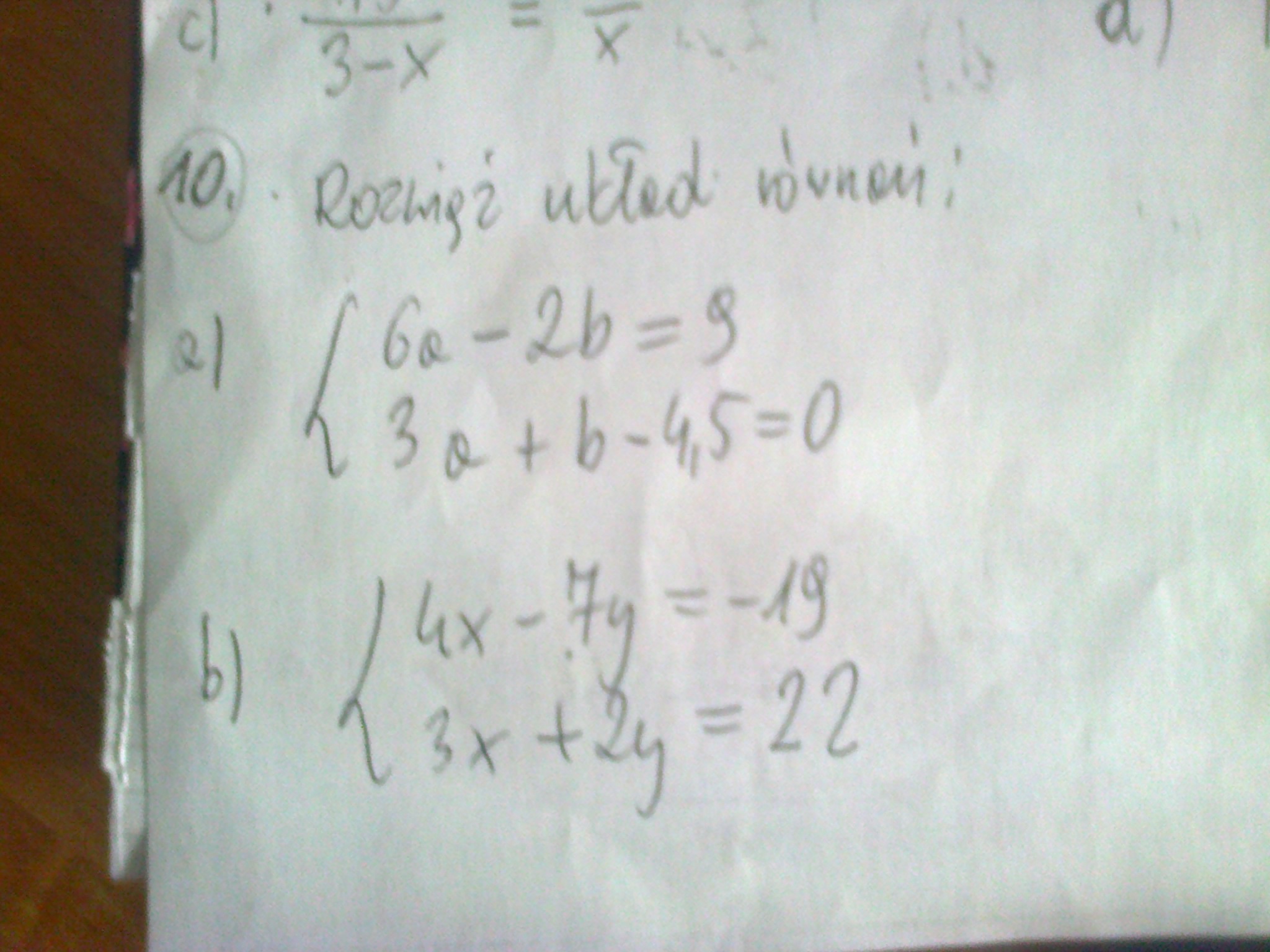 Z drugiego równania obliczamy "b" : b = 4,5 - 3a ; i podstawiamy do pierwszego: