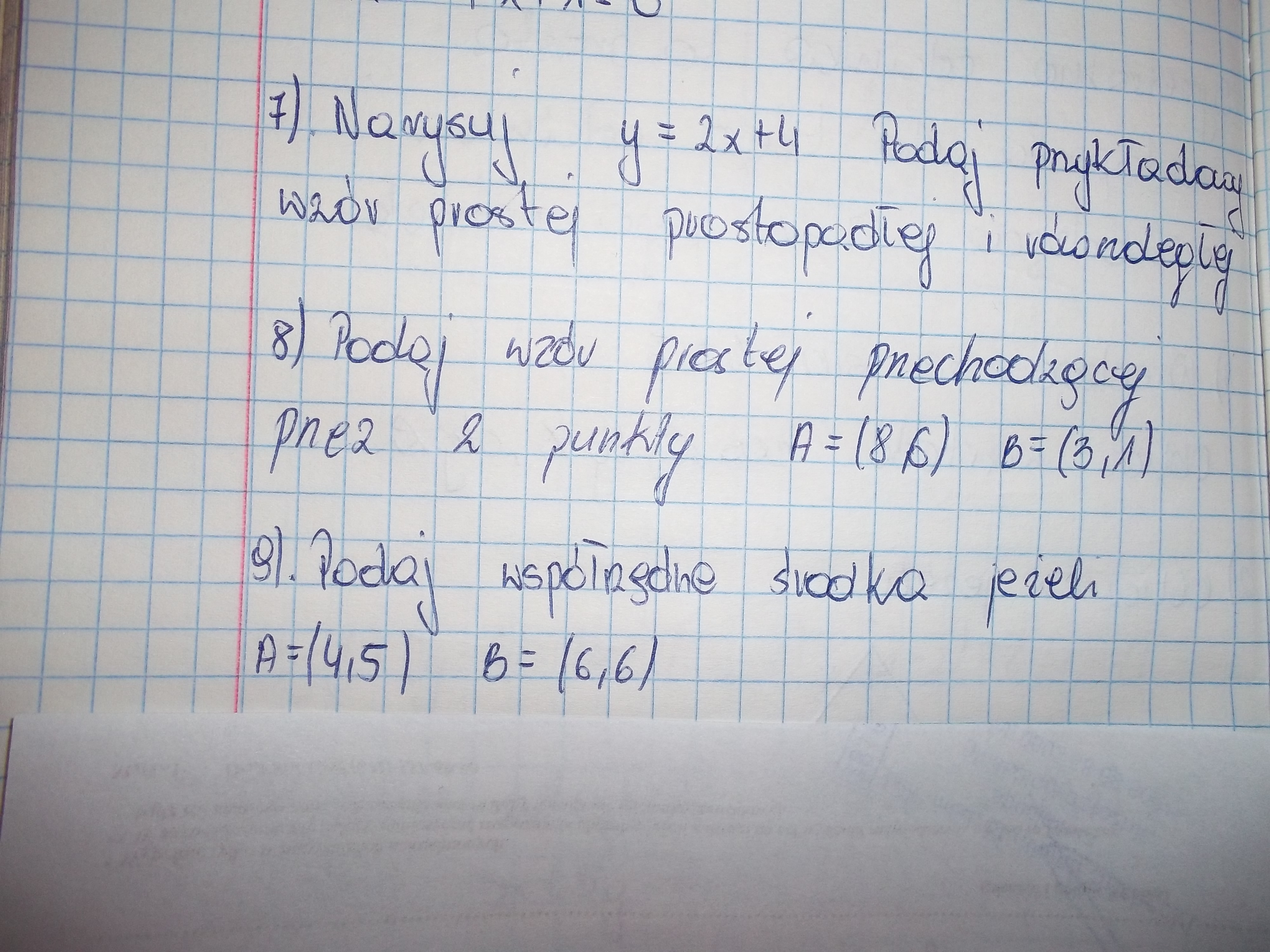 Podstawiamy w miejsce x, y współrzędne punktów A i B. Dostajemy 2 równania: