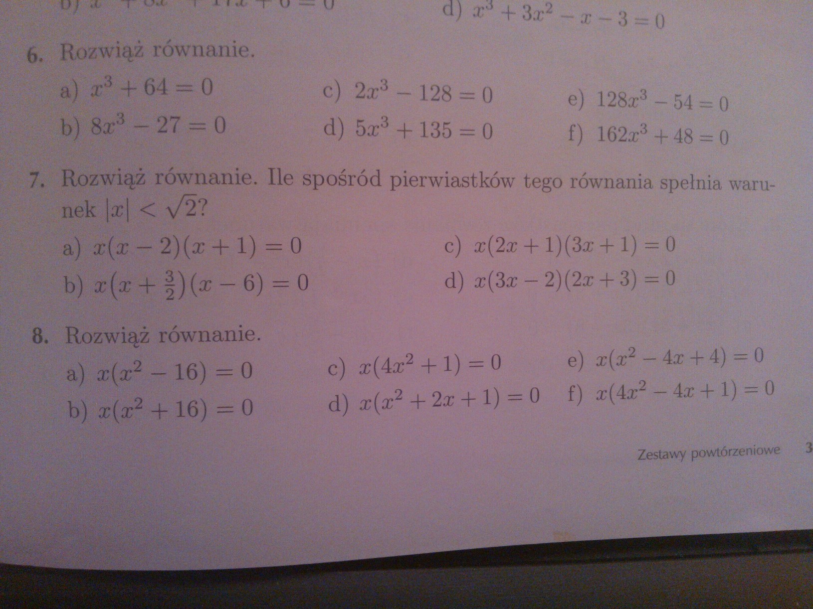 8 zadań po 6 podpunktów w każdym to 24 przykłady do rozwiązania.