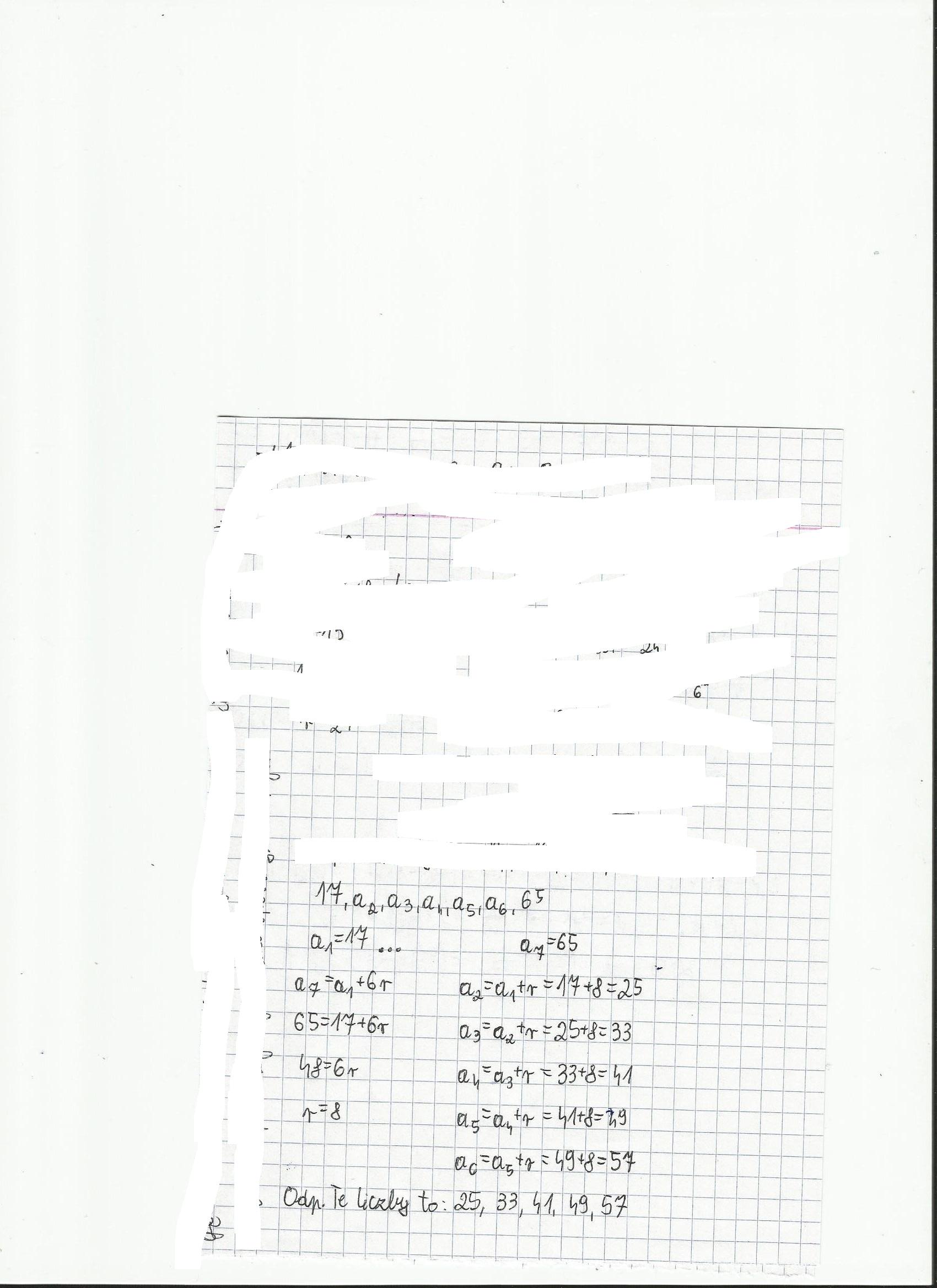 Pomiędzy liczby 17 i 65 wstaw pięć liczb tak, aby wyraz z podanymi tworzyły ciąg arytmetyczny