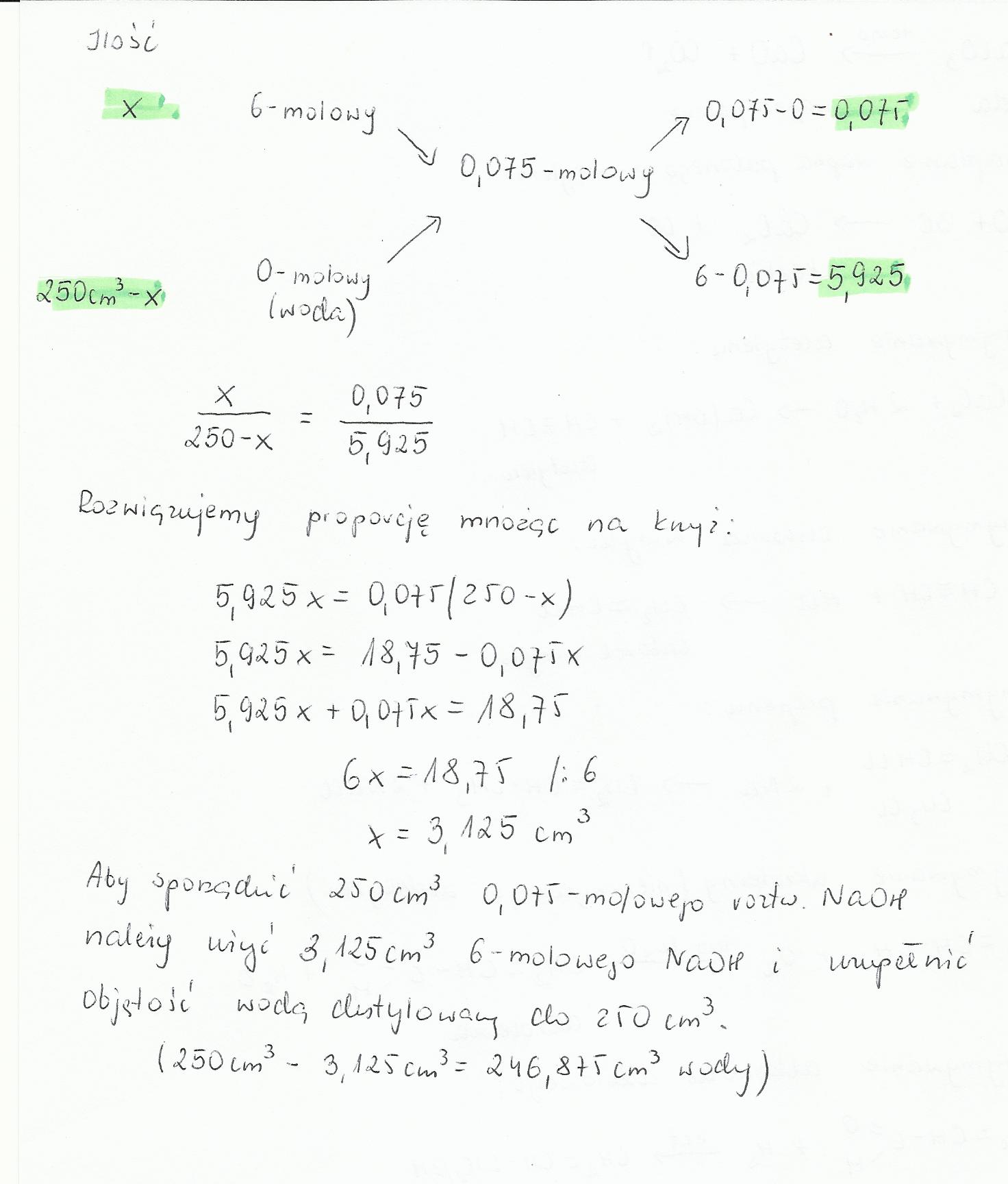 Sporządź 250 cm3 0,0750 molowego roztworu NaOH z roztowru 6 molowego NaOH.