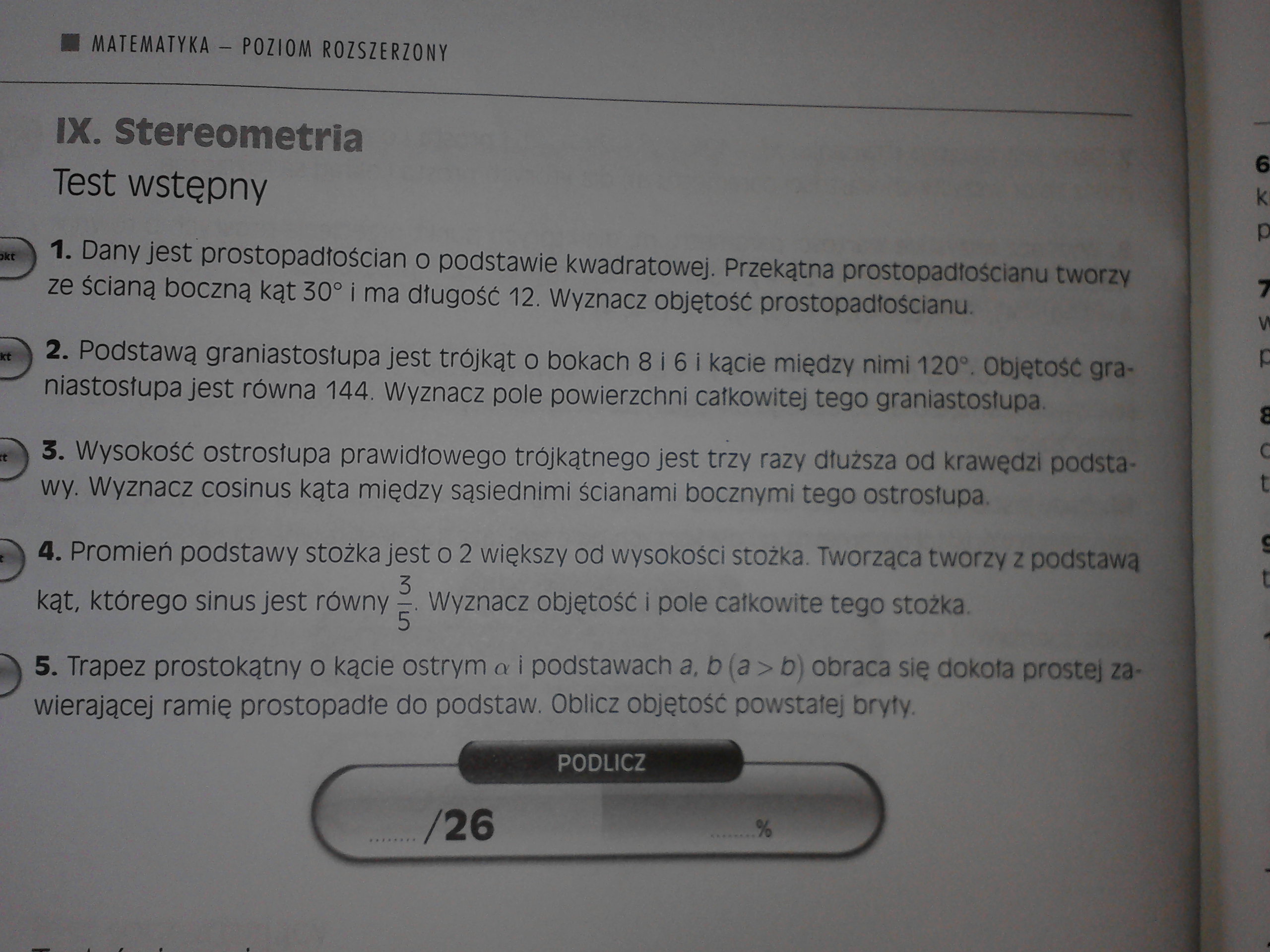 Liczymy wysokość h, równą: objętość dzielona przez pole podstawy