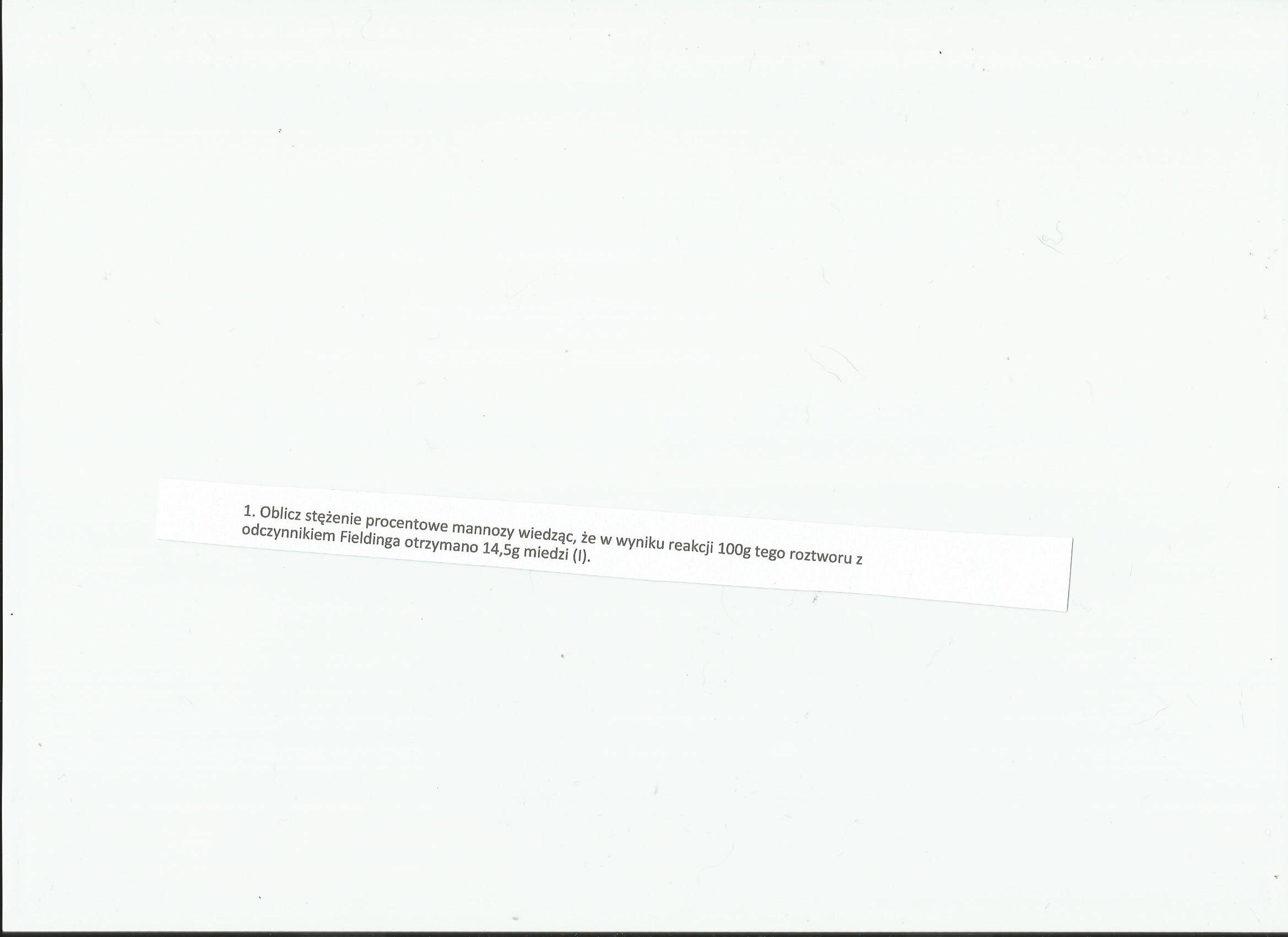mannoza + odczynnik Fehlinga --->kwas glukonowy + tlenek miedzi(I) + woda