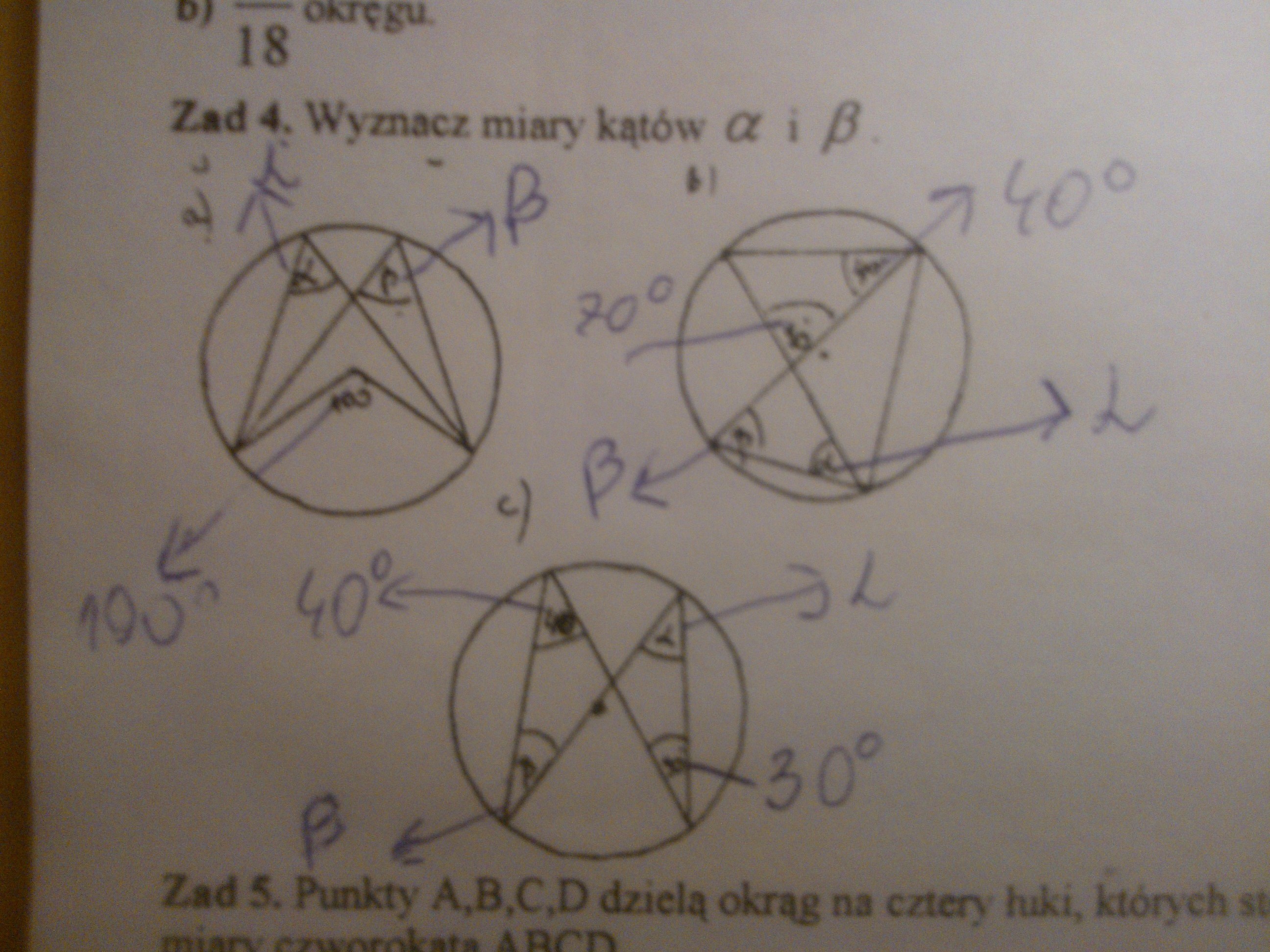 i równe połowie kąta utworzonego przez promienie okręgu więc:
