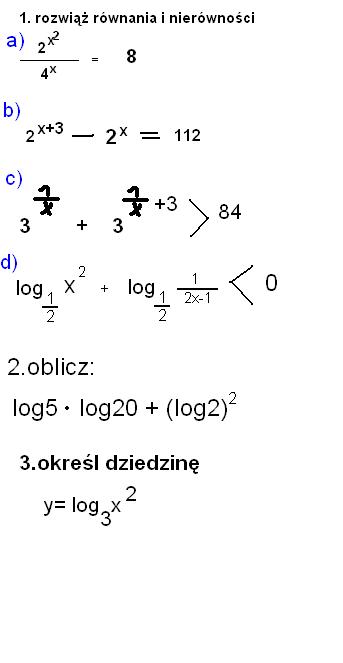 rozwiąż równania i nierówności wykładnicze i potęgowe oraz logarytmy :) prosze ślicznie o rozwiązanie