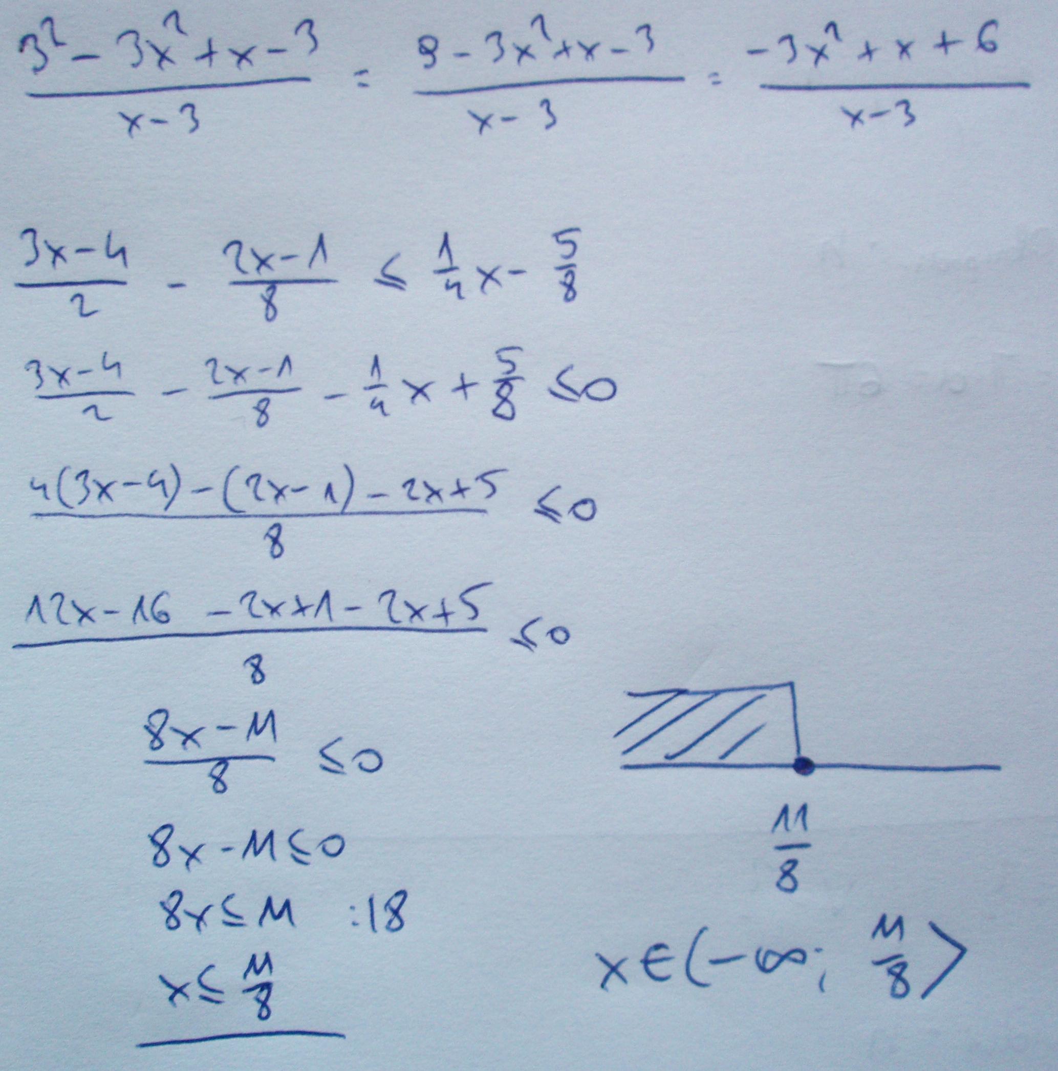 \frac{3^2-3x^2+x-3}{x-3} moje rozwiazanie to 6-3x^2+x