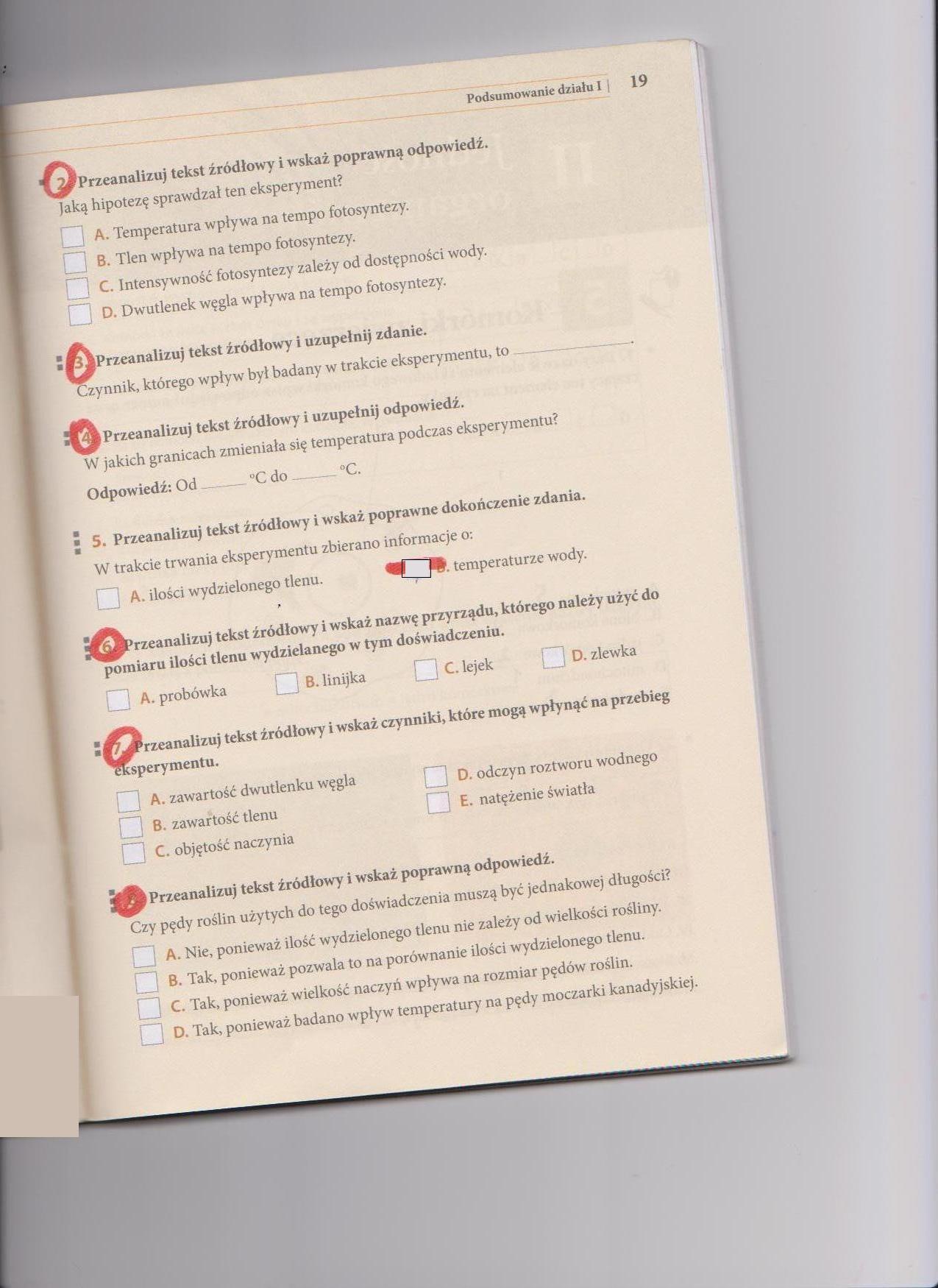 5) odp. A (o ilości wydzielonego tlenu)