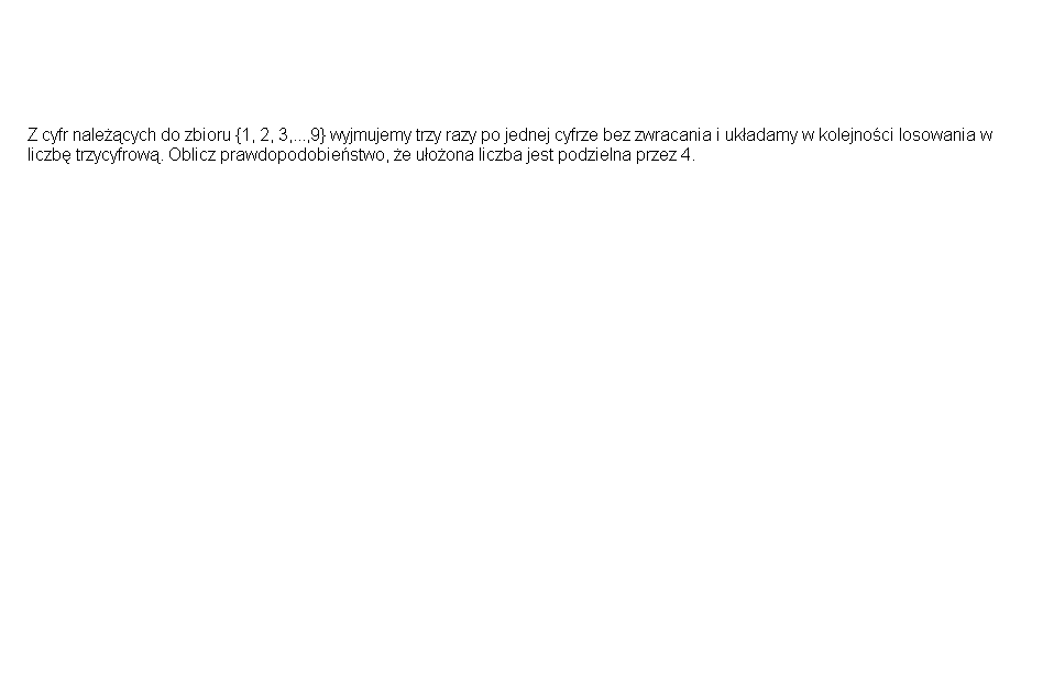 Ilość zdarzeń elementarnych (wariacje bez powtórzeń 3 z 9) to: