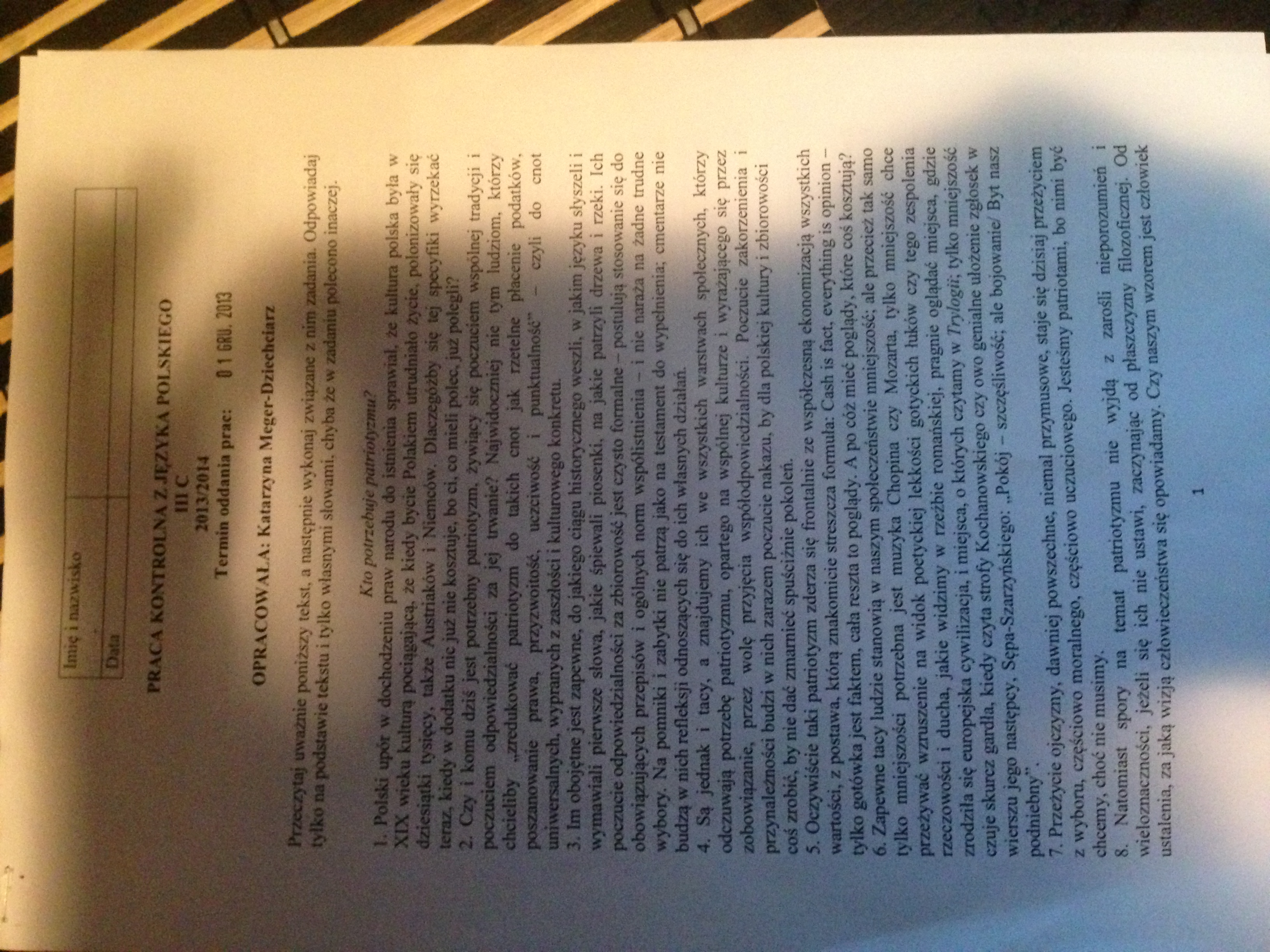 zad 1 jak rozumiesz opinie autora,ze bycie Polakiem dziś już nie kosztuje?
