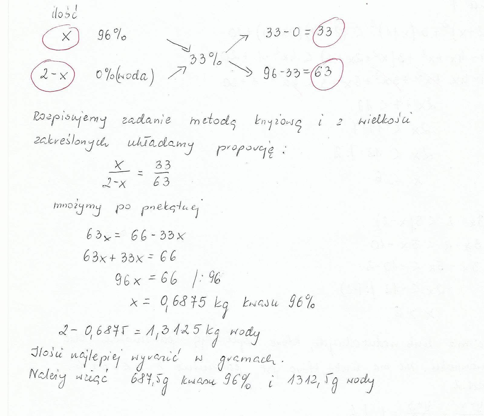 Ile należy wziąć wody i kwasu 96% aby zrobić 2 kg kwasu akumulatorowego 33% ?