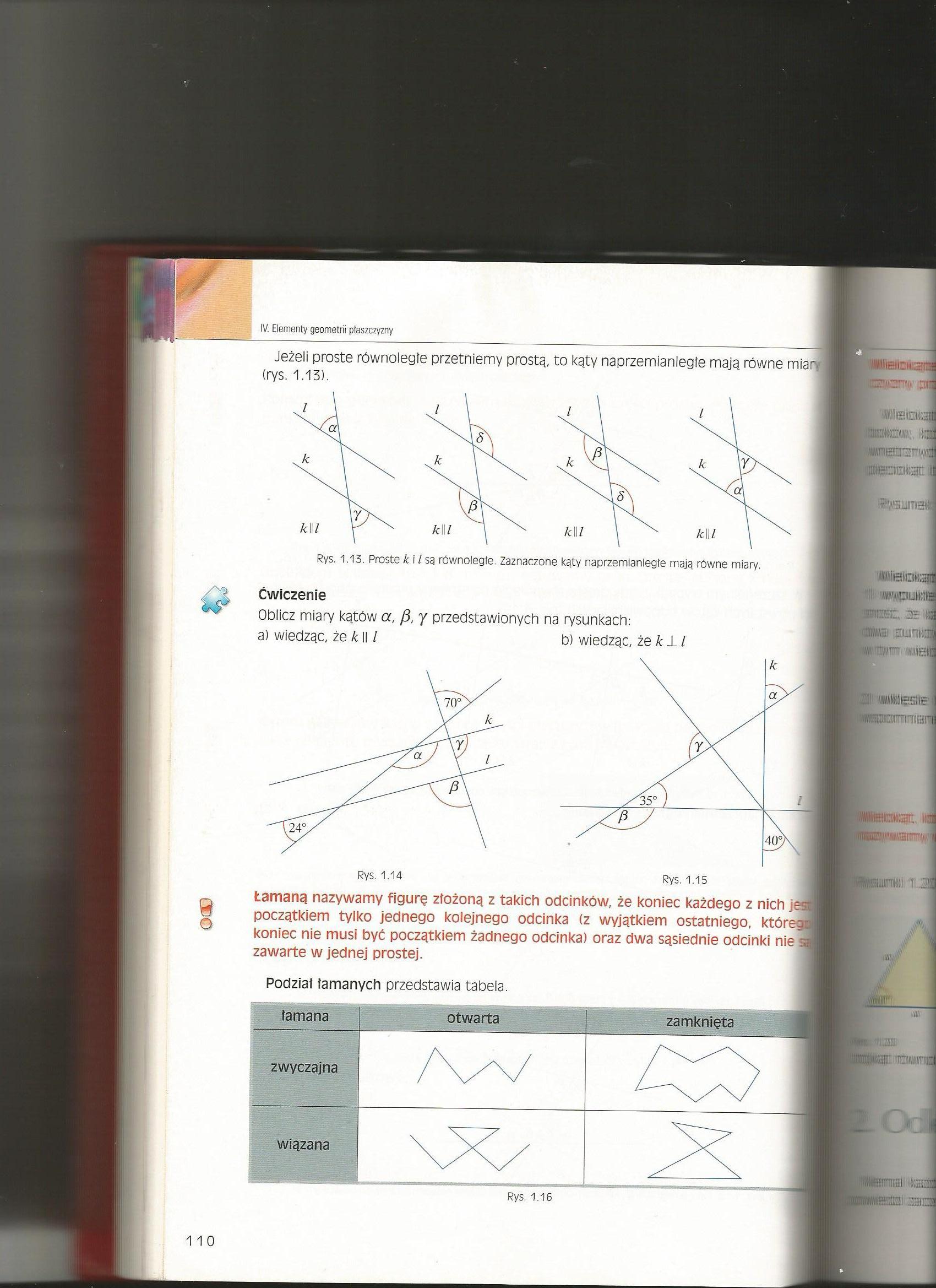 Ponieważ proste k i l są prostopadłe to kąt naprzeciwko alfa wynosi: