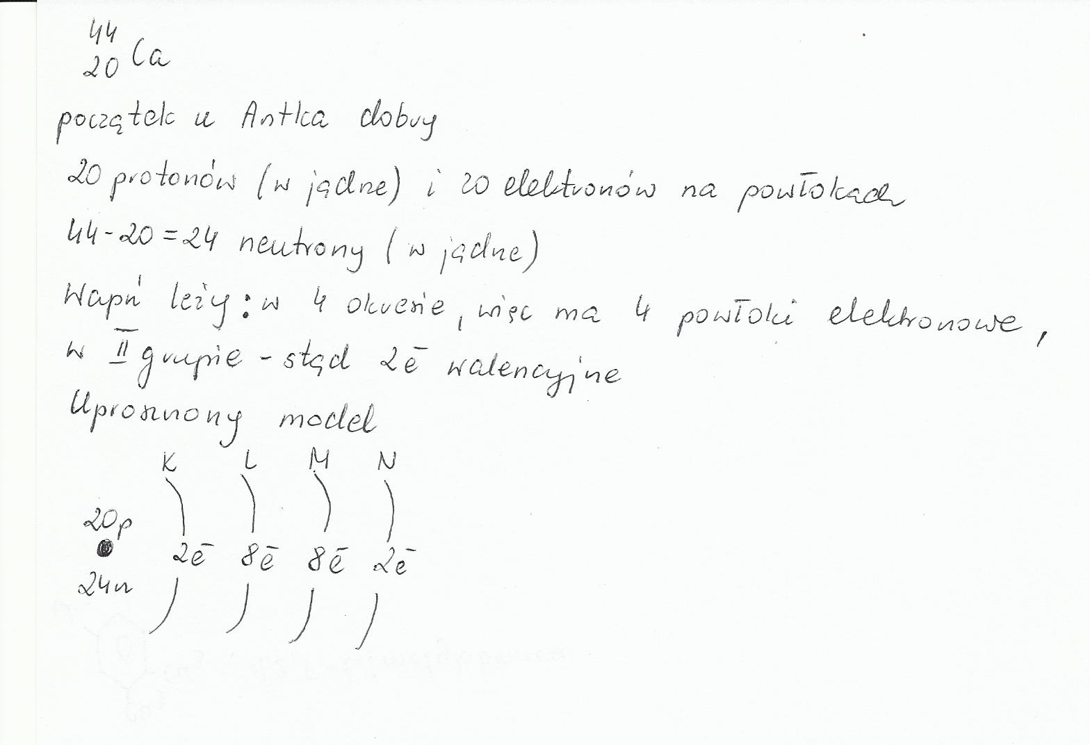 Z dolnej liczby wynika że ten wapń ma 20 protonów i 20 elektronów.