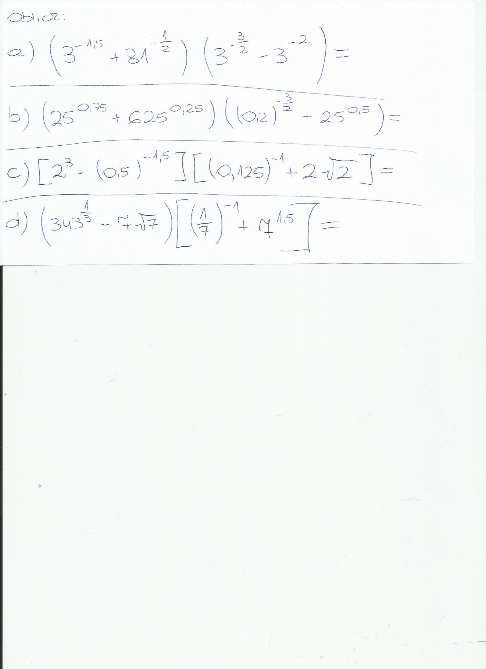a poza tym prawa potęgowania czyli: \left(a^b\right)^c = a^{bc}\qquad\mbox{oraz}\qquad a^{-b} = \frac{1}{a^b}