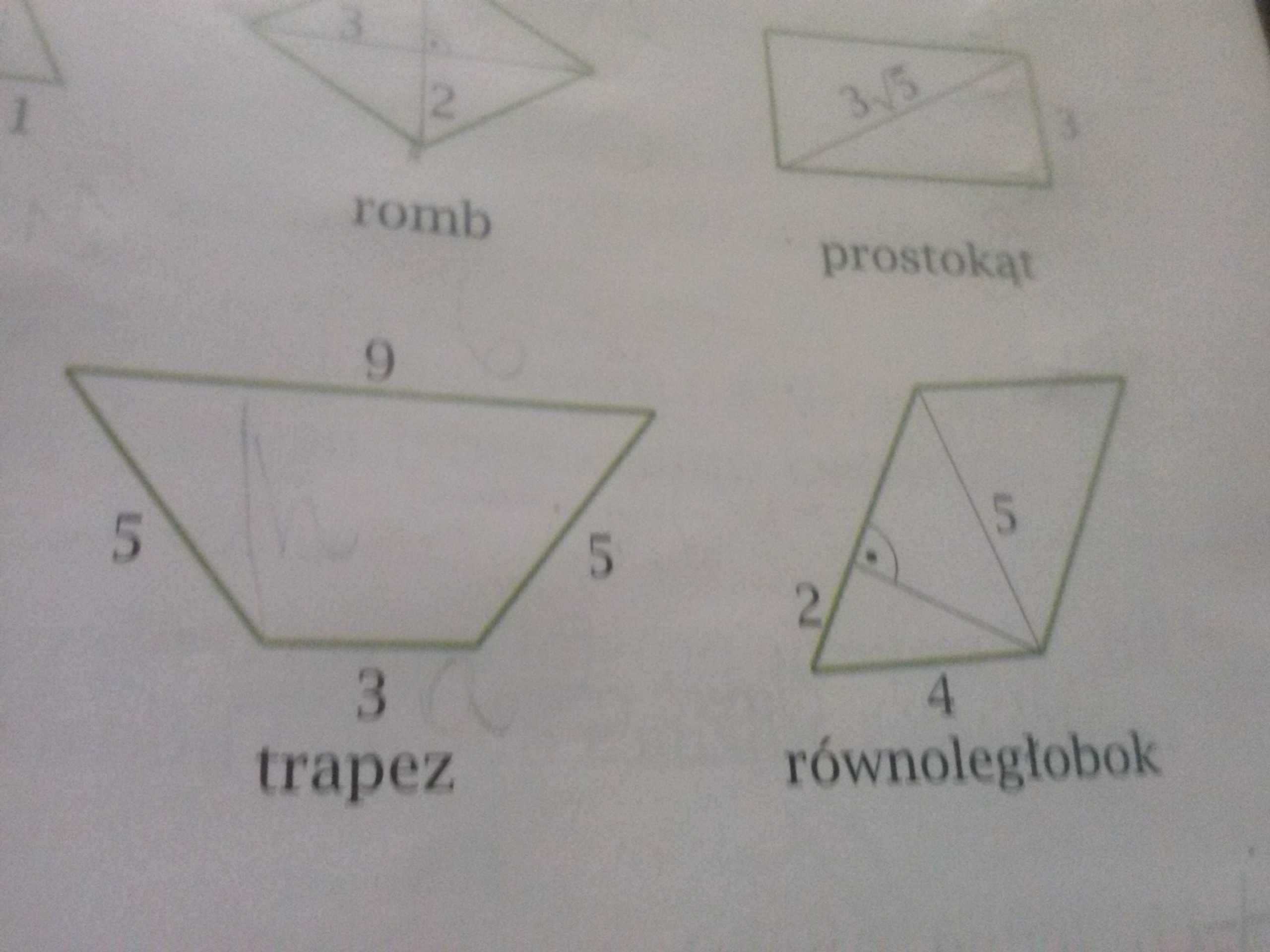 PROSTOKĄT P= ab ( pośrodku jest mnożenie) Ob= 2a+2b TRAPEZ P= 1/2(a+b)h Ob= wszystkie boki dodać KWADRAT P= aa Ob= 4a RÓWNOLEGŁOBOK P= ah Ob= 2a+2b ROMB P= ah ( z przekątnymi jest P= 1/2 * d1 * d2 ) Ob= 4a DELTOID P= 1/2*d1*d2 Ob= 2a+2b *- jest to mnożenie 1/2- ułamek